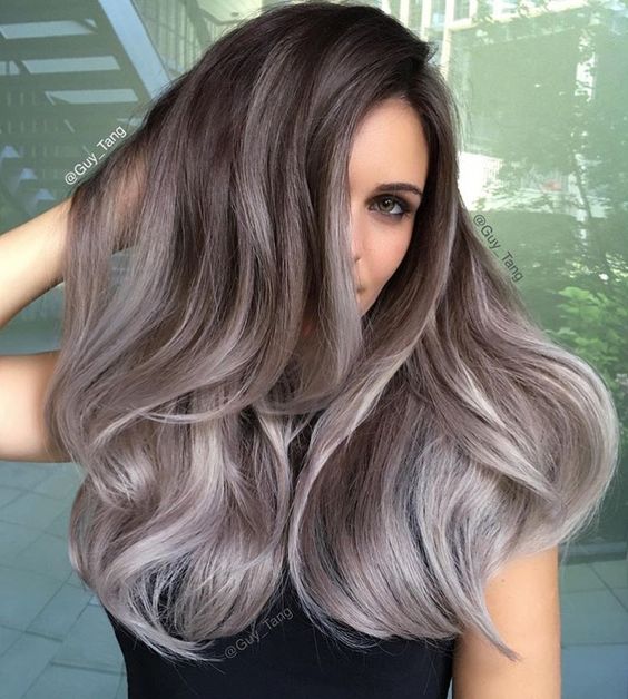 Dégradation est très populaire chez les filles. Pour cette technique, j'utilise plusieurs couleurs contrastantes avec une différence de 5-6 tons. Ils s'étendent sur toute la longueur des cheveux, des nuances sombres aux nuances claires et gracieuses. Cette couleur est meilleure sur les cheveux foncés. Les avantages de la dégradation sont l'aspect naturel et la dissimulation des cheveux repoussés. Les inconvénients de cette coloration complexe est que cela ne peut pas être fait à la maison.