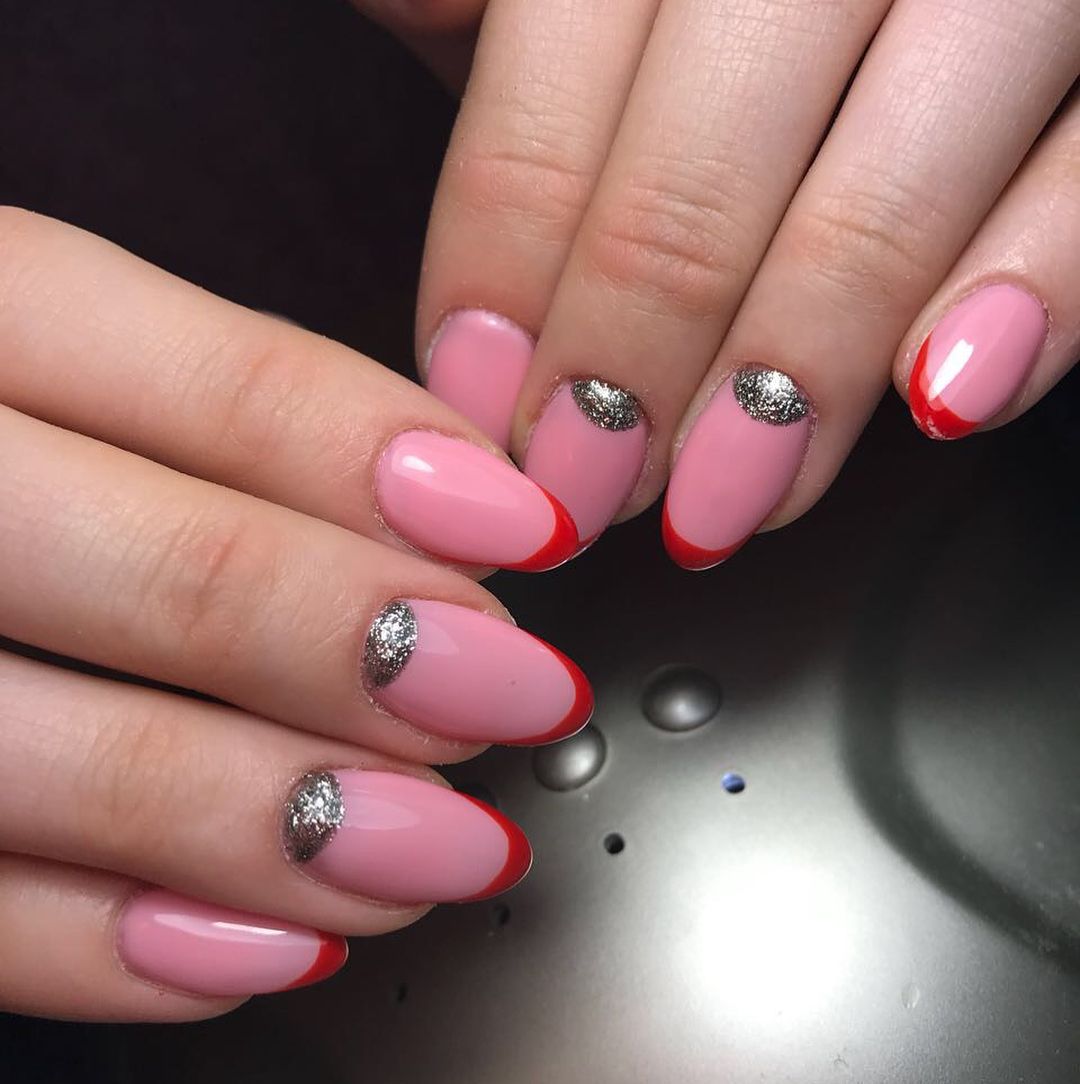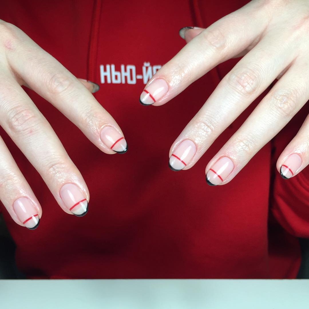 Beaucoup de gens connaissent un millénaire français. Cela signifie qu’une fine bande de vernis est appliquée sur l’ongle et que l’ombrage vertical s’effectue par dessus. En conséquence, la manucure est assez lumineuse et élégante, ce qui en fait une bonne option pour un événement festif.