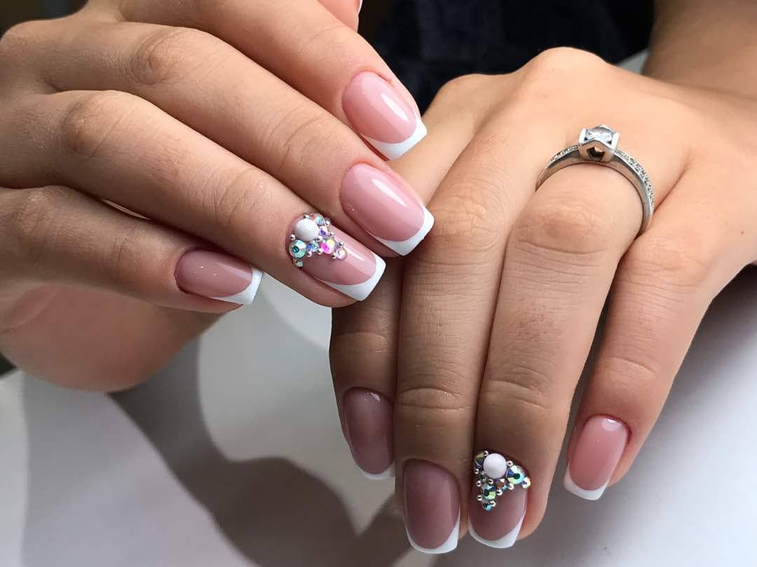 Les cailloux et les strass sont à juste titre considérés comme les options les plus populaires. Ils sont utilisés littéralement partout. Autrement dit, vous pouvez décorer plusieurs clous avec un petit nombre de détails ou les recouvrir complètement de décor.