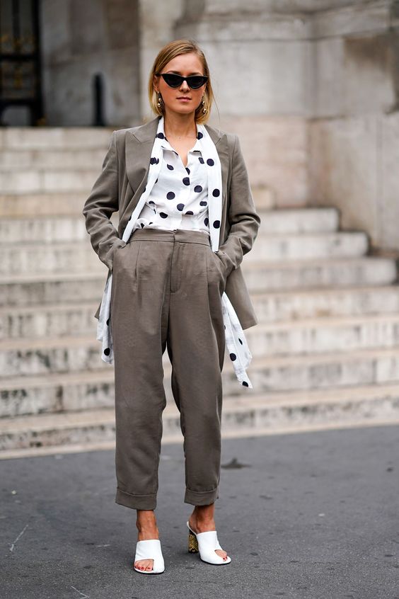 «Smart casual» est visuellement très différent des précédents. Il se caractérise par une certaine détente et une aristocratie. Par conséquent, les choses sont souvent de très haute qualité avec un ajustement parfait. Les nuances sont généralement sobres, naturelles. Grâce à cela, toutes les images ont l’air particulièrement élégant, féminin.
