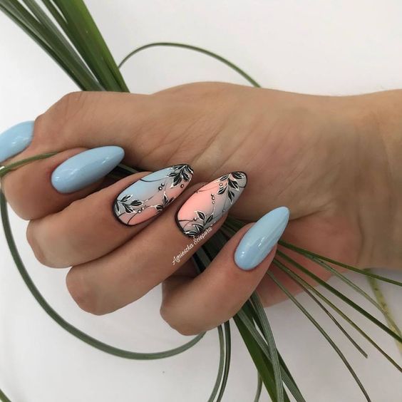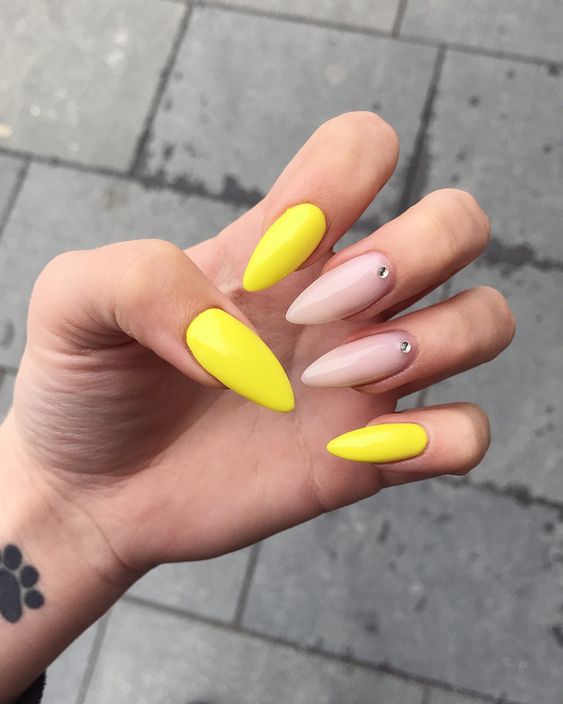 Manucure d'été sur des ongles pointus
