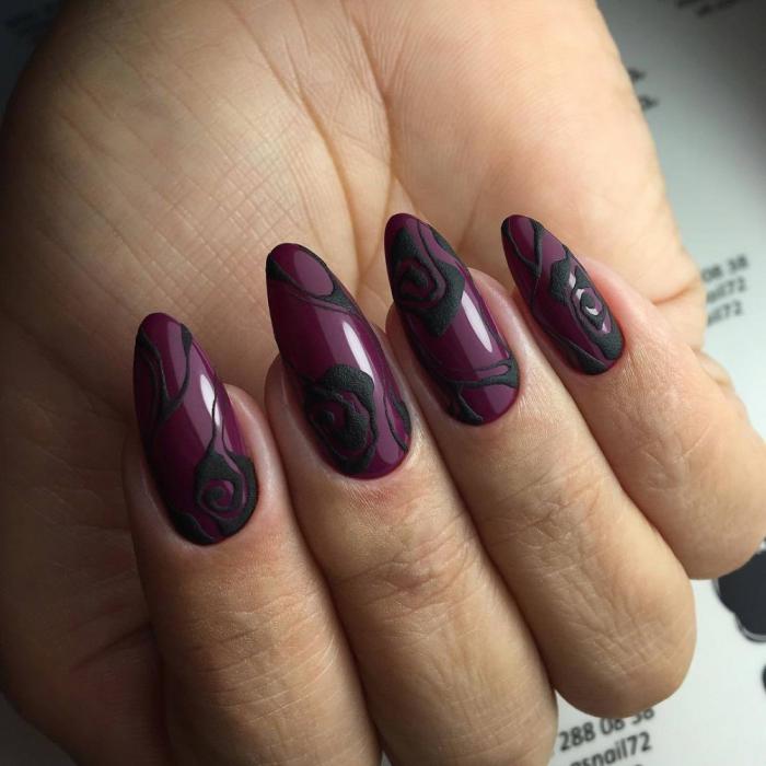 Nous recommandons de porter une attention particulière à la texture du revêtement. Bien entendu, le design brillant sera également à la mode. Mais manucure avec un effet mat ne semble pas moins élégant. Si vous le souhaitez, ils peuvent être combinés en un seul design. Dans ce cas, l’essentiel est de retenir la modération. Le fait est que la finition mate ne tolère pas les détails inutiles. Par conséquent, la combinaison de kamifubuki, strass et perles est une décision désastreuse de la mode moderne.