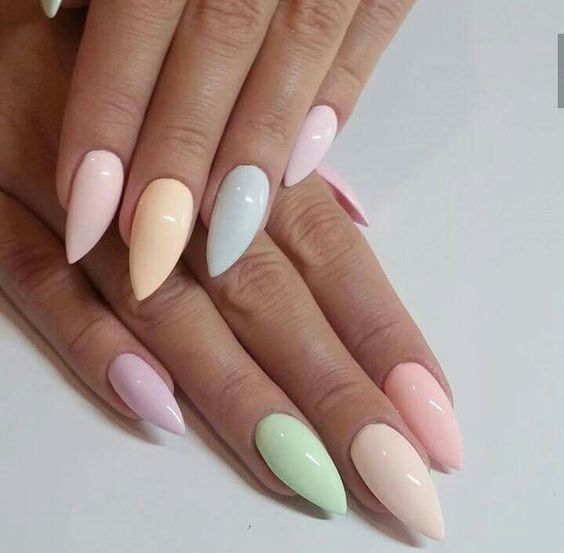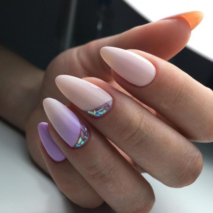 Il convient de noter une manucure sur les ongles acérés en été. Cela n'a pratiquement rien à voir avec le design pour le reste des saisons. C’est parce que c’est en été que les couleurs claires et vives prédominent dans la garde-robe, et que les filles veulent expérimenter les images et avoir l’air un peu plus féminine et tendre.