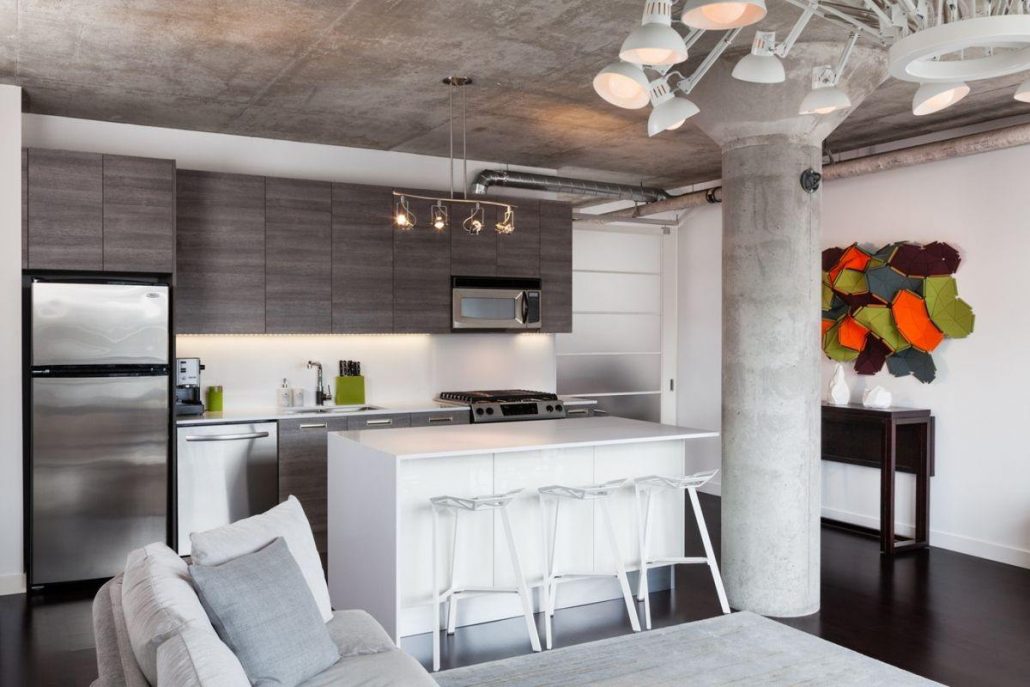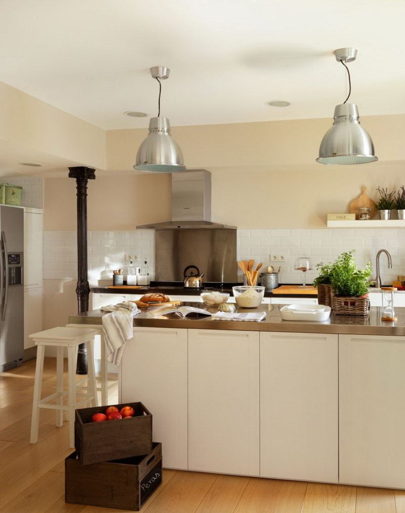 La longueur des cordons des luminaires dépend de la hauteur du plafond de la cuisine. Ils doivent être placés légèrement au-dessus des mezzanines. Il est important que l’éclairage n’interfère pas avec l’ouverture des portes de la cuisine.