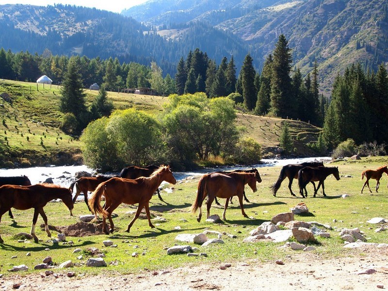 Le tourisme équestre est florissant car les chevaux sont considérés comme des animaux sacrés pour les Kirghizes. Vous pouvez monter à cheval ou faire une randonnée de deux semaines le long des glaciers et des cols alpins. Pendant la randonnée, les touristes s’occupent des animaux en toute indépendance, préparent leur propre nourriture, qu’ils obtiennent eux-mêmes.