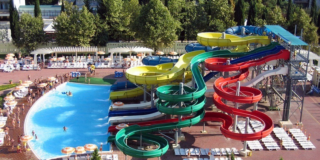 Dans le parc aquatique en plein air "Amphibius" avec de nombreuses attractions aquatiques, piscines, animations pour enfants.