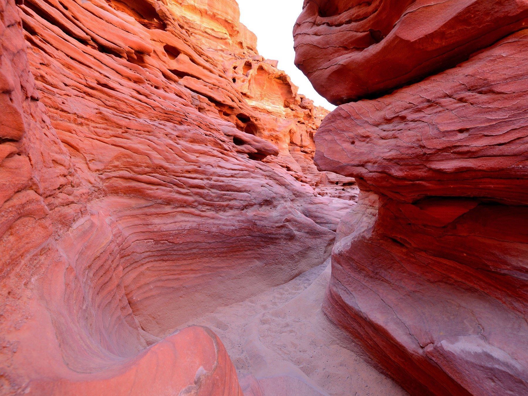 Le Colored Canyon est situé à 150 km de Charm el-Cheikh. Des roches jaunes, blanches, rouges, beiges et grises formées de sable coloré mélangé à de l'oxyde de manganèse et du fer sont un spectacle fabuleux. Le prix du voyage est d'environ 50 à 60 dollars.