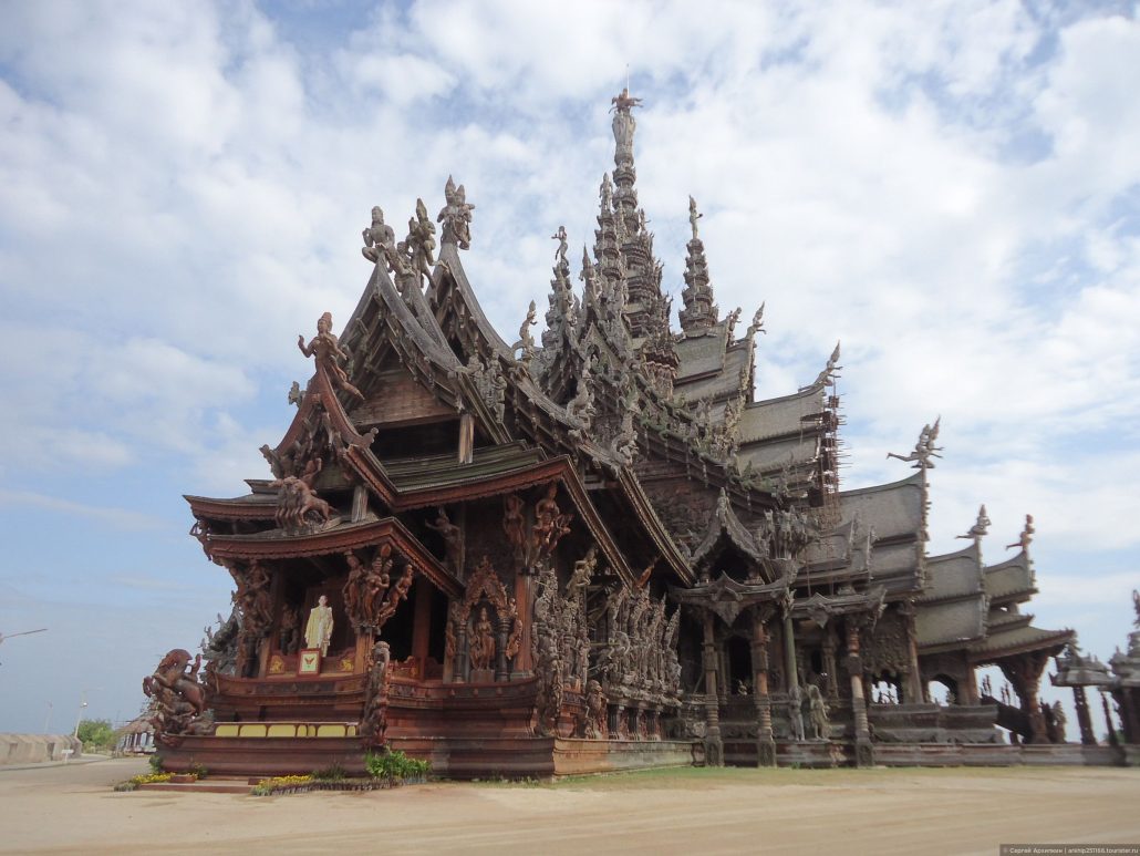 Lorsque vous voyagez à Pattaya, n'oubliez pas de visiter le temple de la vérité. Le bâtiment est décoré de sculptures sculptées dans le bois. À l'intérieur du temple, règne une atmosphère de calme et de tranquillité. Divers spectacles de style national ont lieu ici tous les jours. Le prix d'entrée au temple est de 900 roubles.