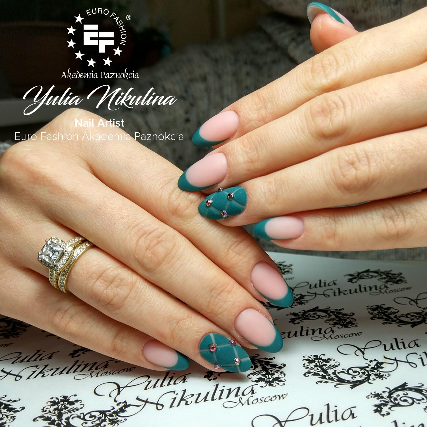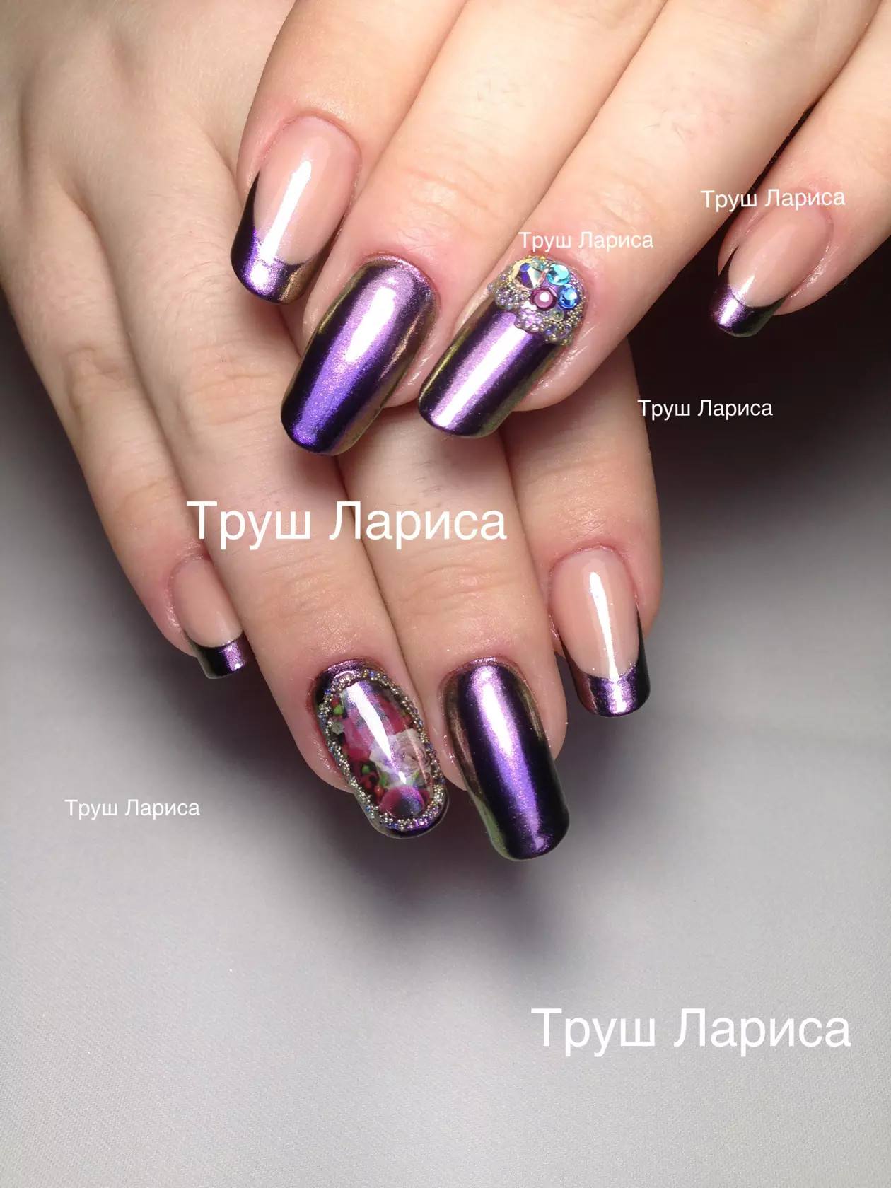 La manucure française ne cesse d'étonner les fashionistas avec ses innovations. En effet, à chaque saison de la mode nail art, de nouvelles idées luxueuses de manucure sont proposées. Par exemple, il est actuellement très à la mode de combiner une manucure française sur des ongles ovales avec une finition mate de velours. Effectuer une telle manucure implique une couverture complète avec un vernis mat ou un top avec cet effet. Cette manucure a fière allure quand on couvre tous les ongles. Pour une manucure plus inhabituelle, une combinaison avec du brillant est effectuée. Dans ce cas, tous les ongles sont recouverts d'un vernis matte modéré, et plusieurs d'entre eux sont brillants. Pour un tel design, un voile de voile ou des strass sont utilisés comme décor.