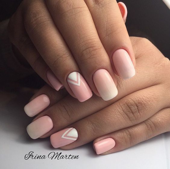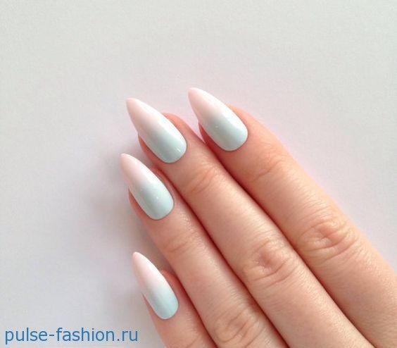 La douceur des tons pastel est encore mieux exprimée dans un dessin en dégradé. Mais cela ne signifie pas qu'il vaut la peine de mélanger plusieurs couleurs. Au contraire, deux ou trois tons seront beaucoup plus attrayants. Par exemple, la guimauve rose avec du bleu est une excellente solution si vous souhaitez réaliser la version la plus délicate et sophistiquée. En outre, le dégradé peut ne pas être utilisé sur tous les ongles, mais uniquement en mettant l'accent sur un ou deux.