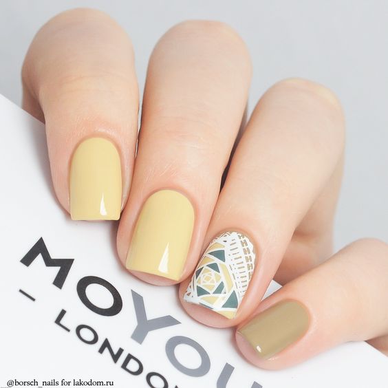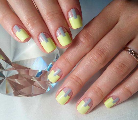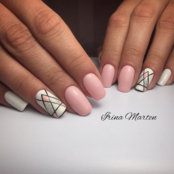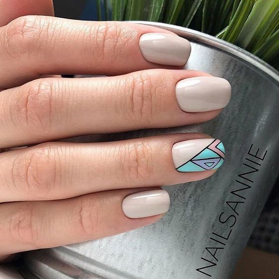 La conception géométrique est toujours très populaire. Ce n'est pas surprenant, car il a fière allure non seulement dans des couleurs vives ou atténuées, mais aussi dans des couleurs pastel. Cependant, l’essentiel est de ne pas trop dessiner. Sinon, la conception peut paraître ridicule.