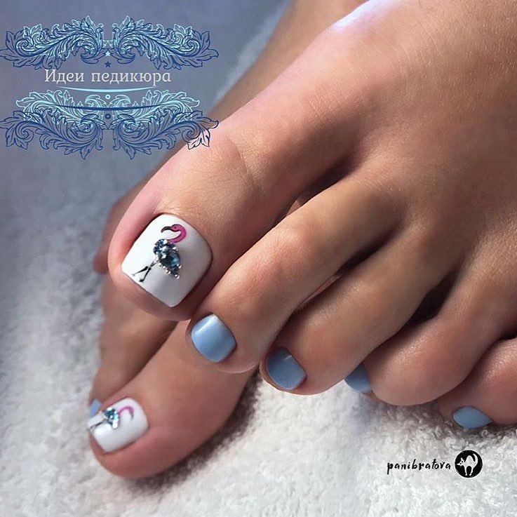 Les nouvelles tendances de la pédicure estivale vous étonnent par leur design coloré, excitant et vibrant. Le point principal de toute pédicure élégante et moderne sera les impressions, les motifs et les dessins. Selon l’image créée, il est judicieux de choisir le modèle de pédicure approprié: il peut s’agir d’une dispersion de paillettes et de strass, de nuances lumineuses de vernis ou de dessins envoûtants de divers sujets. Une pédicure en couleurs nude mat aura également l’air très séduisante et mignonne. Une veste délicate ou ombre est parfaite pour les pédicures estivales quotidiennes. Original et pertinent cet été sera une pédicure avec des motifs prédateurs, l’image d’hirondelles délicates, un cœur mignon, ou une sculpture magnifique et volumineuse sur les ongles. Il est préférable d'utiliser divers suppléments dans une pédicure estivale à la mode sur la vignette.