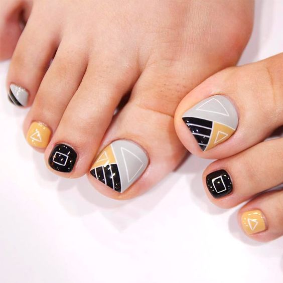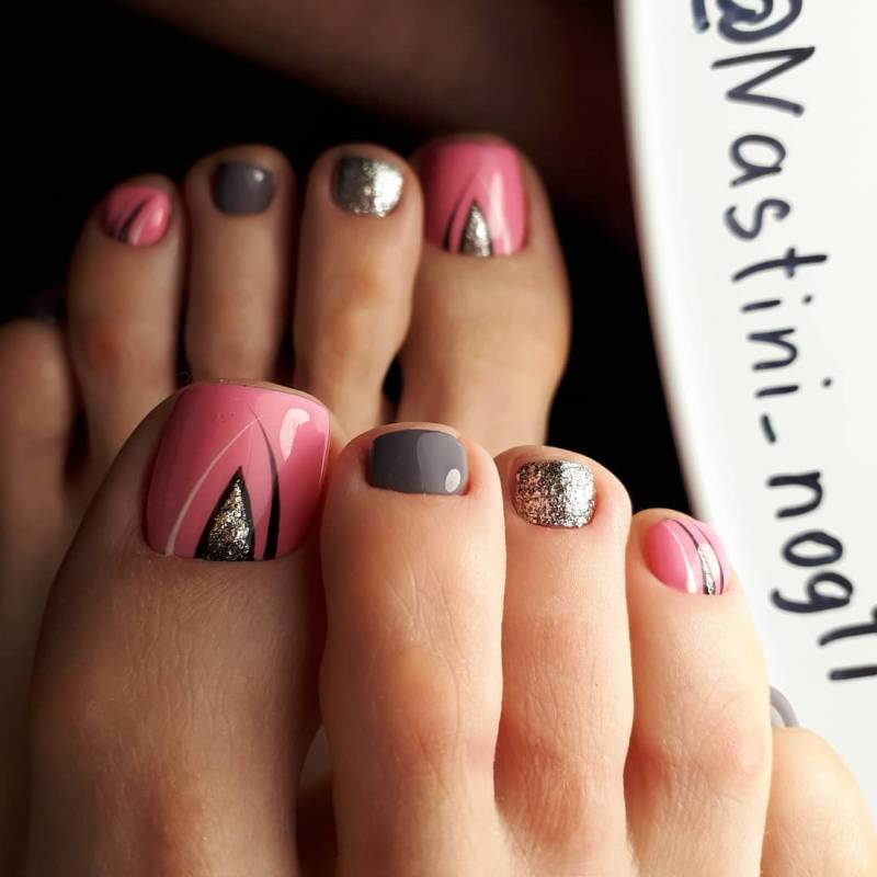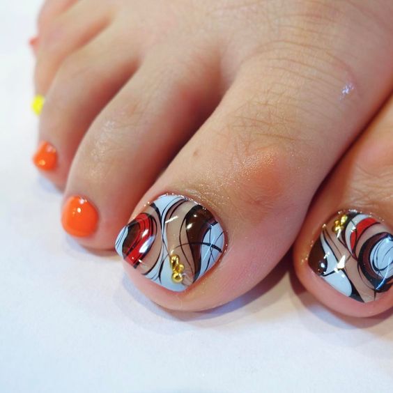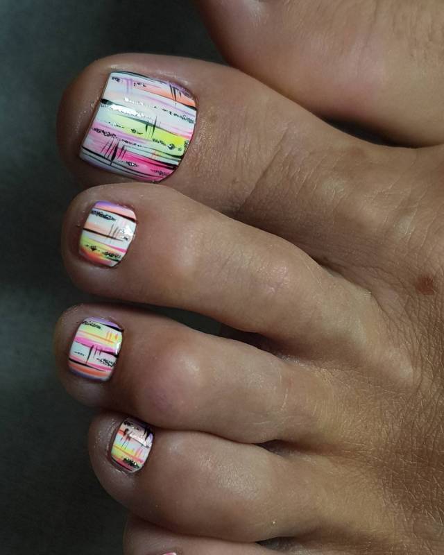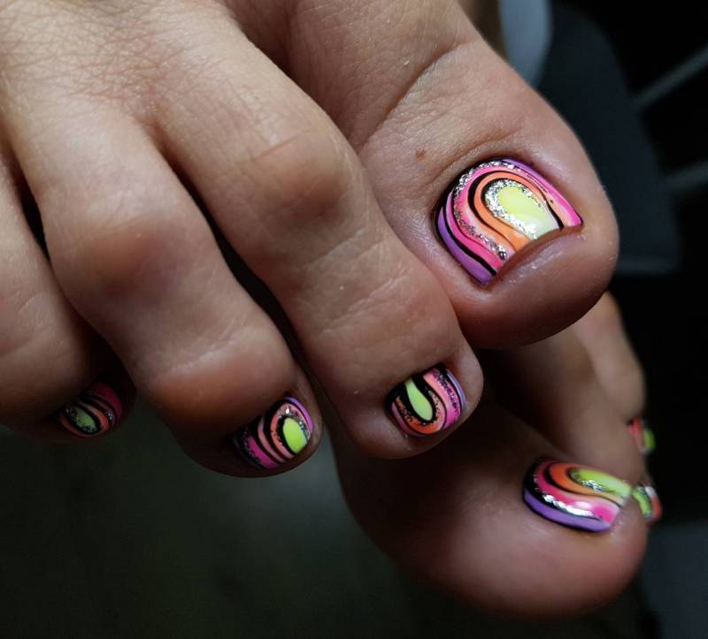 Si les pédicures traditionnelles vous ennuient, optez pour une belle pédicure au design abstrait cet été. Une telle image sera inhabituelle et d’une nouvelle manière. Un dessin abstrait vous permettra de réaliser une pédicure estivale élégante en utilisant de nouvelles solutions. L'abstraction peut être réalisée à la fois dans des couleurs pastel contrastées douces et en utilisant des couleurs vives avec l'ajout d'or.
