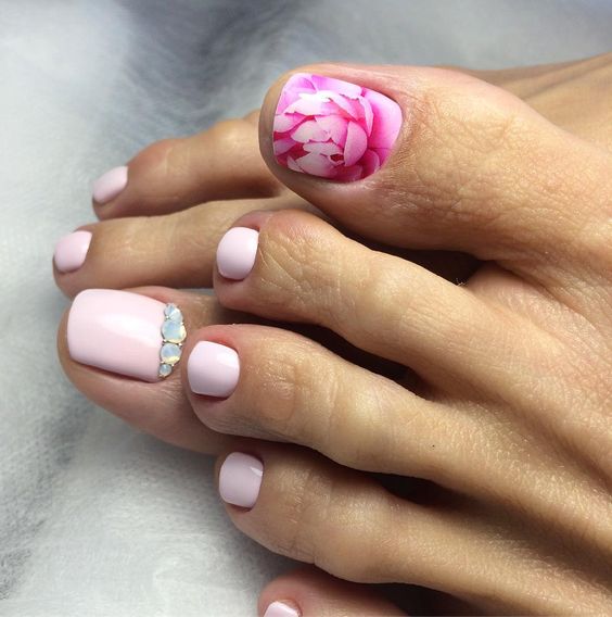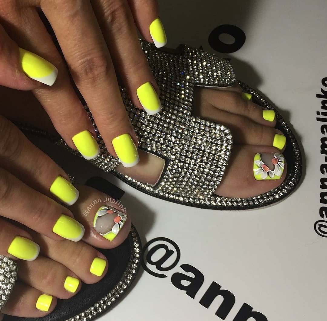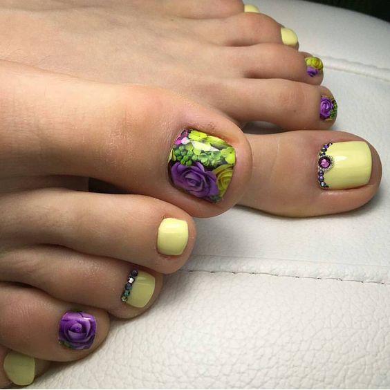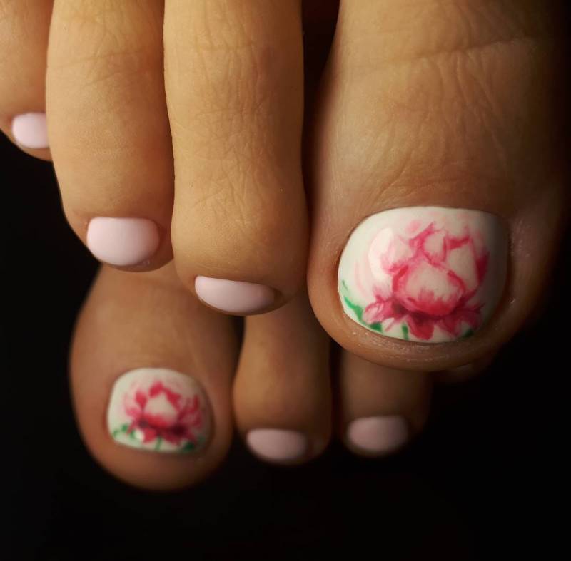 L'image de fleurs et de plantes diverses est une option gagnant-gagnant pour la création d'un pédicure d'été à la mode et élégant. Les dessins floraux sont très beaux et élégants, ils contribueront toujours à créer un design de pédicure estival «vivant» et à revitaliser l’ensemble de l’image créée. Une variété d'images de fleurs, feuilles, brindilles de palmiers sera belle et originale dans la conception estivale de la pédicure.