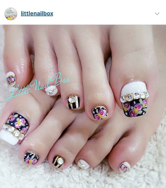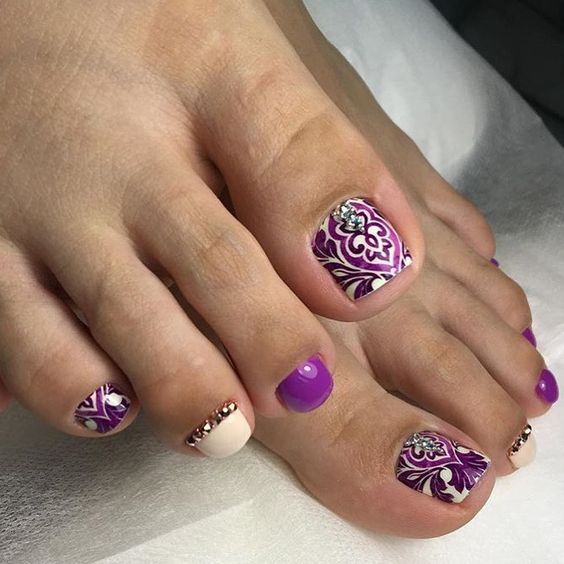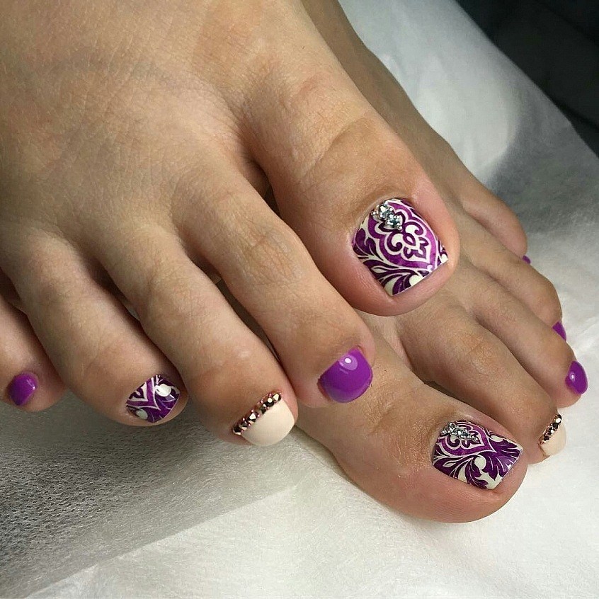 Pédicure avec motifs et strass originaux