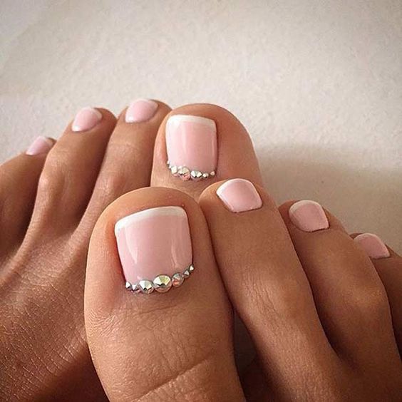 Pédicure française avec strass - succès de la saison estivale 2026