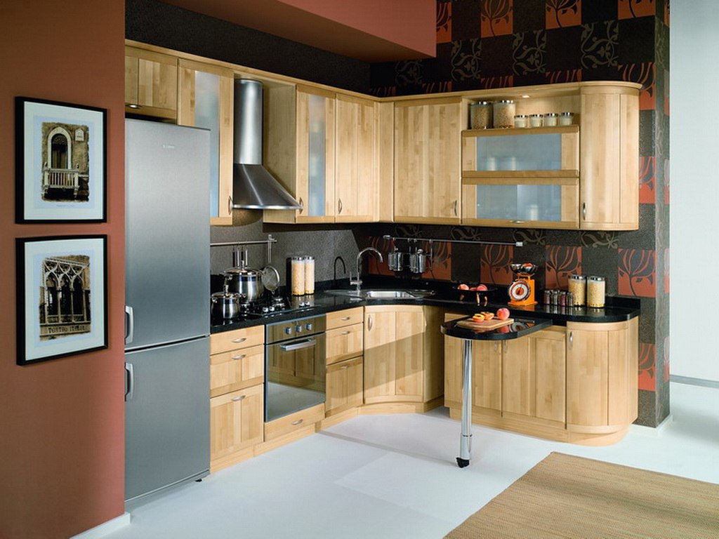 La disposition des coins est universelle. Il convient à une cuisine de n'importe quel endroit par rapport à d'autres pièces et dimensions. Une cuisine de taille moyenne de forme carrée sera idéale pour ce type de planification. Ici, la "règle du triangle" serait appropriée. Avec cette disposition, l'espace est économisé et au centre, il y a suffisamment d'espace libre pour l'emplacement de la table et des chaises de cuisine.