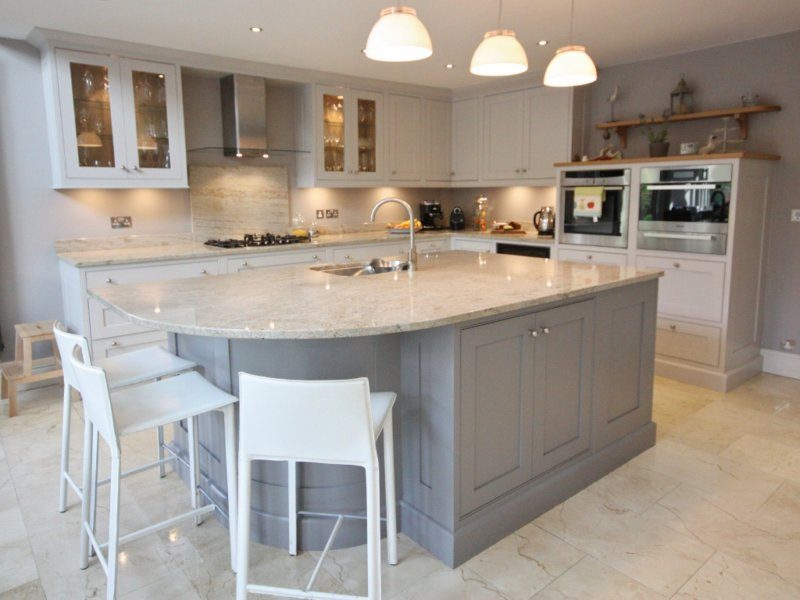 Ce schéma peut être utilisé pour les cuisines dont les dimensions sont supérieures à 15 mètres carrés. m., c'est-à-dire plus que la moyenne. Ceci est généralement une combinaison avec un salon ou une salle à manger.Vous pouvez créer une disposition d'île en combinaison avec tout type décrit ci-dessus. Pour ce faire, vous devez ajouter un îlot de cuisine - une salle à manger, une surface de travail, des systèmes de stockage. En fonction de la superficie de la cuisine, la taille de l'île dépendra également.