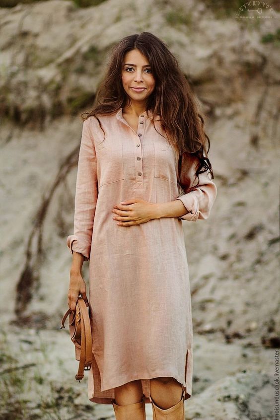 - Matériaux et décoration actuels de la robe chemise femme