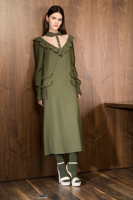 Le style militaire plaît à beaucoup de filles. Ce style est largement représenté en combinaison avec des robes chemise. Créant une image militaire, il est impératif de compléter la chemise par des bijoux et des accessoires. Cela aidera à adoucir un peu l’arc, à lui donner de la sophistication et de la tendresse. Lors du choix d'une couleur kaki, il convient de garder à l'esprit qu'elle doit être présente exclusivement dans la tenue principale. Afin de ne pas surcharger l'image, il est préférable de choisir le reste de ses éléments dans des couleurs différentes.