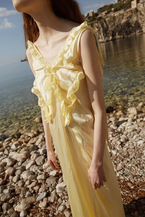 Des robes avec des épaules nues et des ornements de volants rendront la femme unique. La partie du corps sexuellement exposée est favorablement soulignée par la douceur des vagues créées par les volants. La plupart des modèles de designer sont fabriqués sous la forme d'une robe d'été. Une robe avec une vague dans le type d'une grande vague corrige très favorablement la taille, cachant des kilos en trop dans l'abdomen.