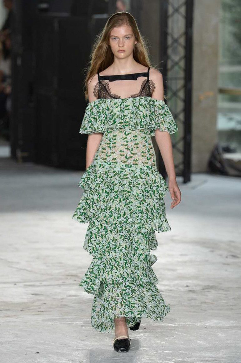 De magnifiques robes à volants sur les manches ont été présentées par les stylistes cette saison. La mode pour une manche à plusieurs niveaux est une autre nouvelle tendance des marques de mode qui survit avec succès dans une garde-robe féminine. Ce modèle de robe est très impressionnant. Des volants sur les manches de différentes hauteurs soulignent efficacement les courbes de l'épaule et affinent les bras visuellement.