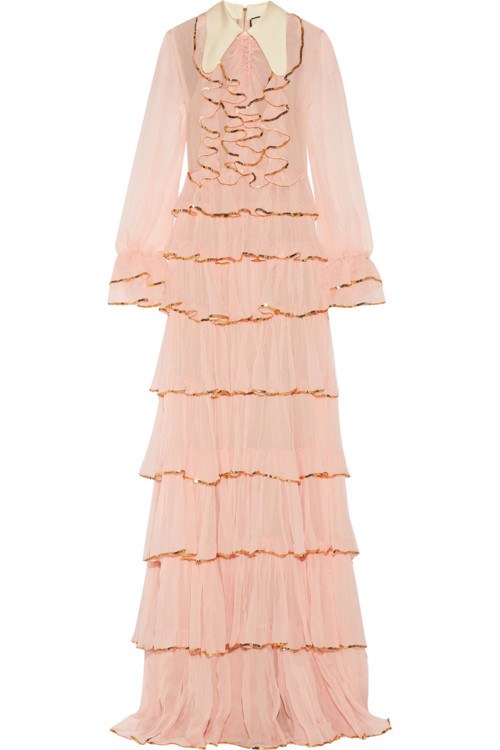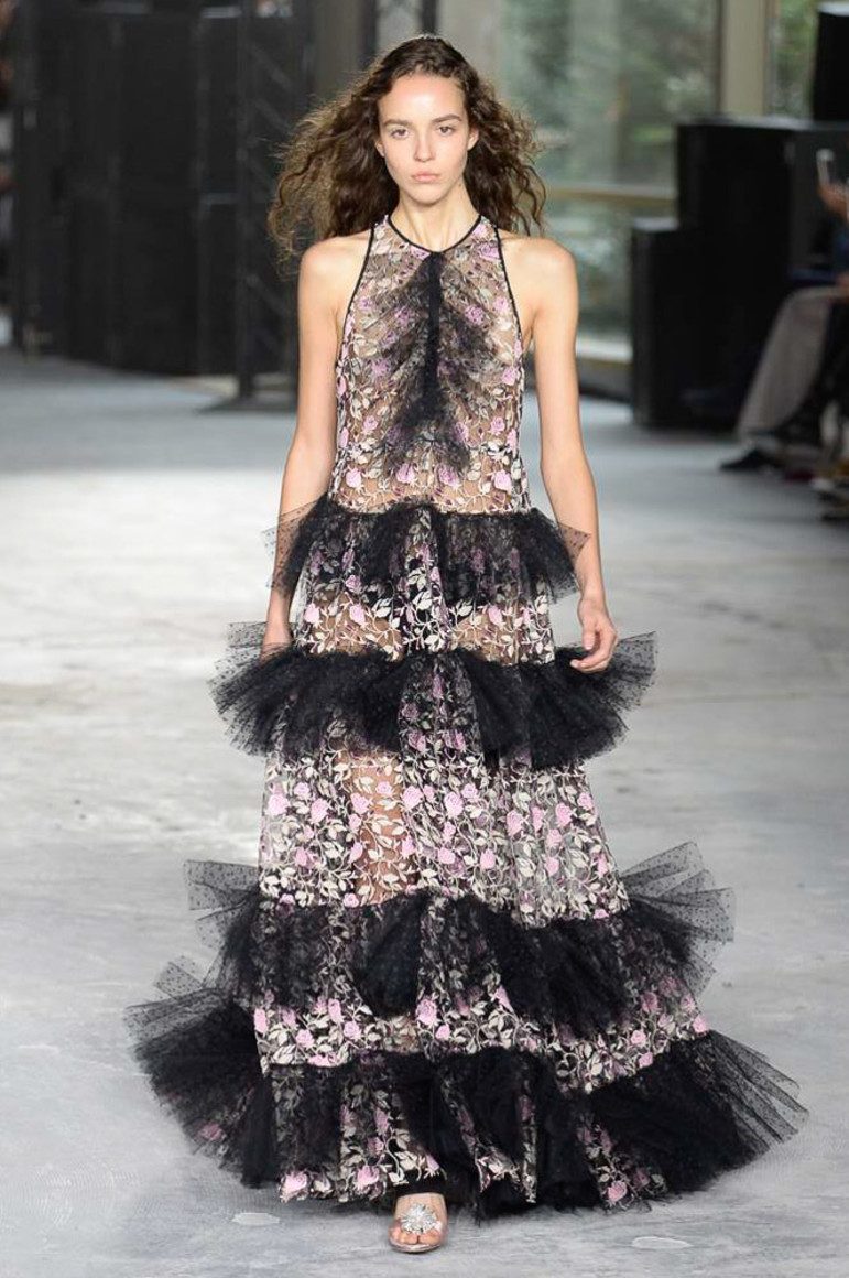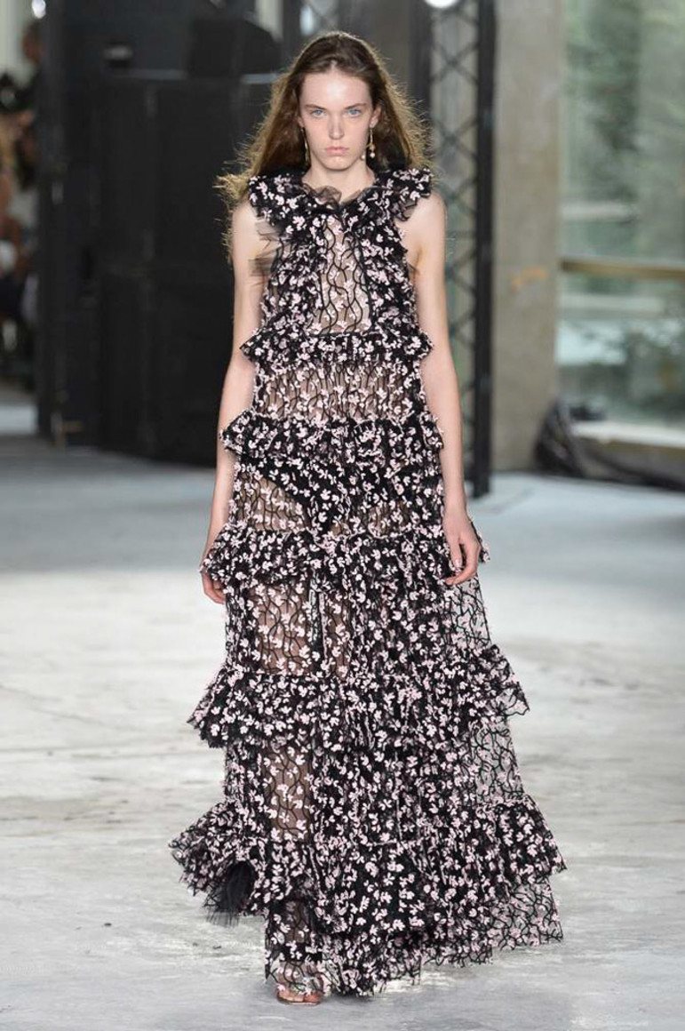 Il est impossible de dire avec des mots à quel point les modèles présentent de manière irrésistible et efficace des robes longues à volants de nombreuses collections. La conception à plusieurs niveaux de la jupe sur le sol est perçue très différemment du bas d'une coupe droite. Le matériau utilisé pour coudre des robes longues à volants est le plus léger, ce qui confère à l’image une légèreté. Même par beau temps en été, une femme sera à l'aise dans un tel modèle de robe à volants.