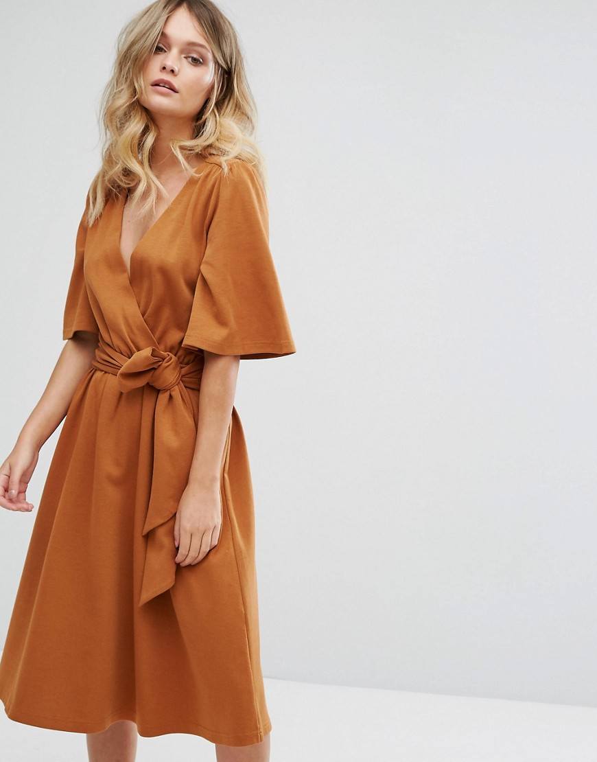 Une robe en tricot avec une odeur et un imprimé assez brillant est une très bonne option pour voyager. Ces modèles à la mode ne se froissent pas du tout, s’effacent facilement et conviennent non seulement au look de tous les jours, mais également à la création d’arcs de vacances. Les femmes plus âgées perçoivent une robe enveloppante faite de matières florales comme un peignoir. Même sans se soucier de quoi l’équiper. Pour une robe avec une odeur avec un imprimé ou un ornement à la mode, vous devez absolument choisir un petit sac à main ordinaire, un ornement sur le cou ou les oreilles.