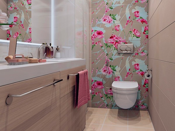 La taille optimale de la tuile, qui est prévue pour décorer le mur dans une petite toilette, est de 10 * 10 et 15 * 15. Plus la taille du matériau est petite, plus la conception de la pièce sera nécessaire, et plus la pièce aura l'air large.