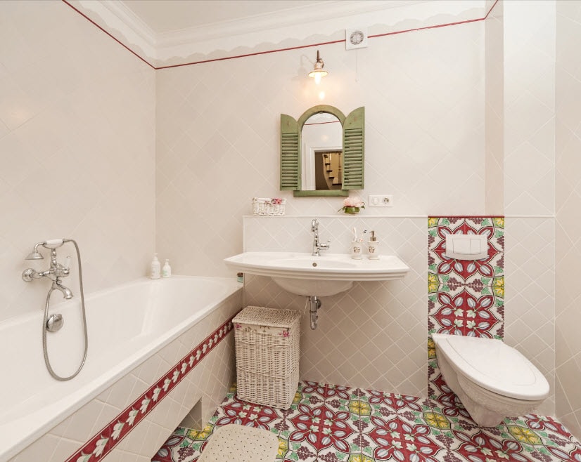 Un design intéressant et riche dans une salle de bain moderne est obtenu grâce à la combinaison de plusieurs types de ce carrelage.