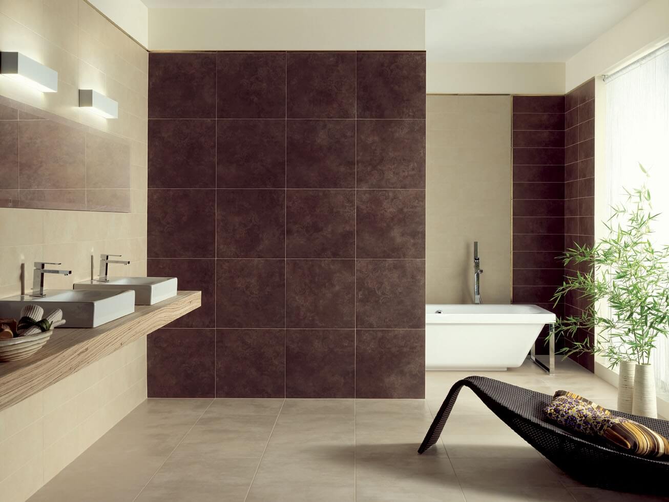 Tous les types de carreaux conviennent à une salle de bain de taille moyenne ou grande. Une dalle trop petite ne convient pas à une petite pièce - elle réduit la pièce, il est donc préférable d’utiliser des tailles grandes et moyennes.