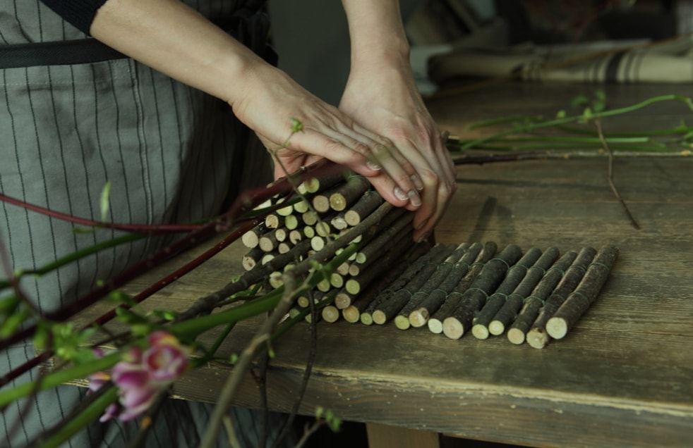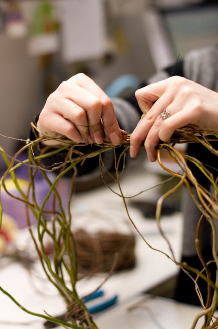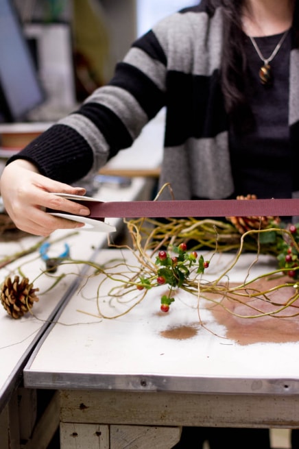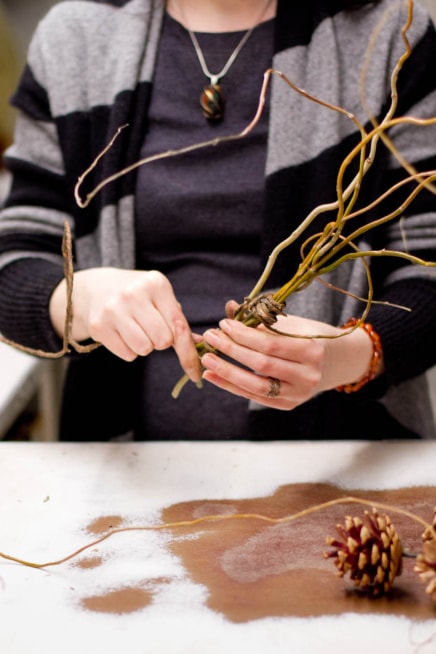 Nous coupons le fil floristique décoratif et enveloppons plusieurs branches avec une couche dense.