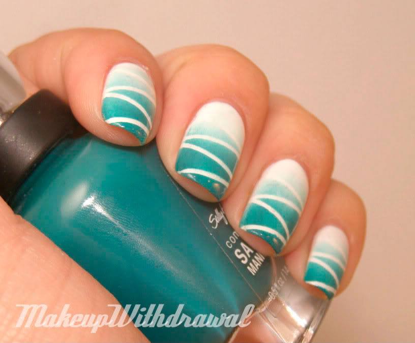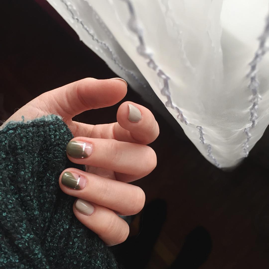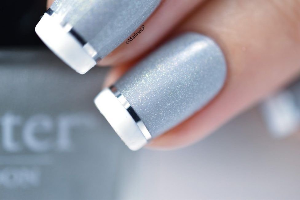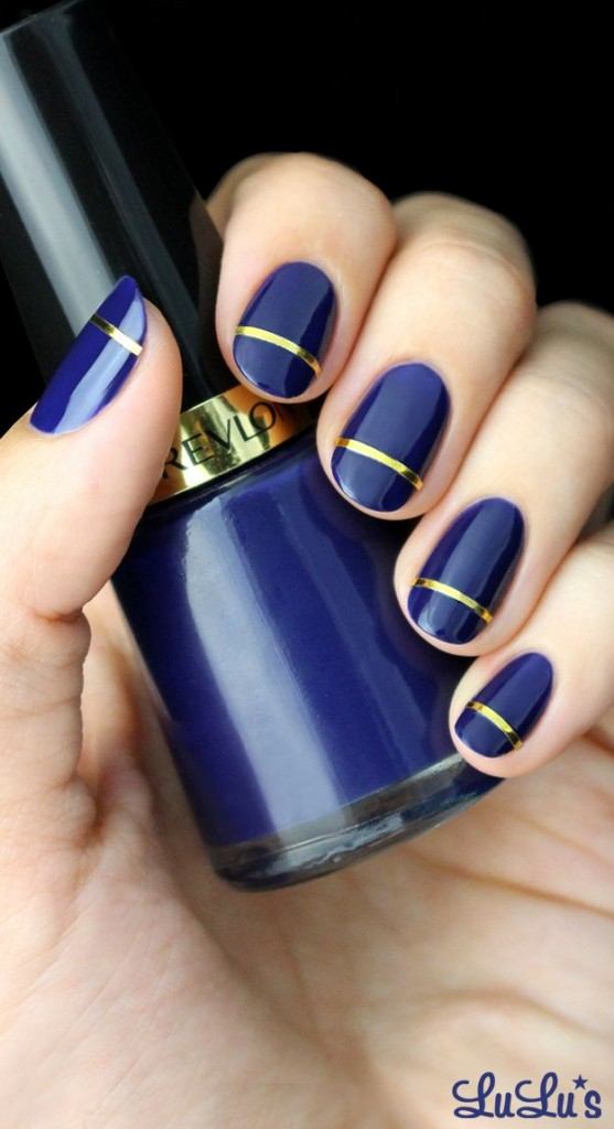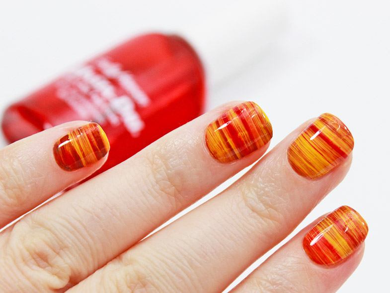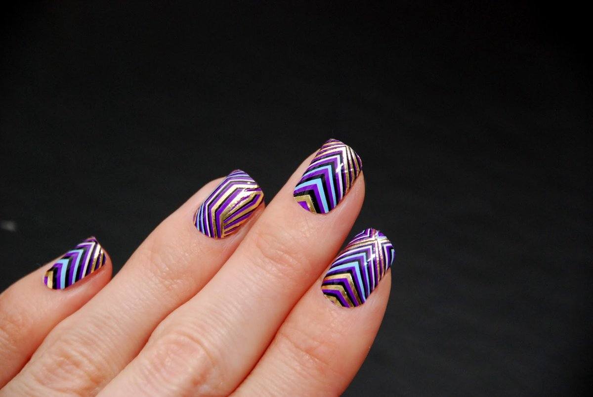 Manucure à rayures utilisant des rayures verticales et horizontales.