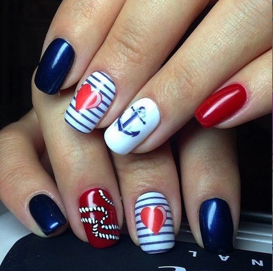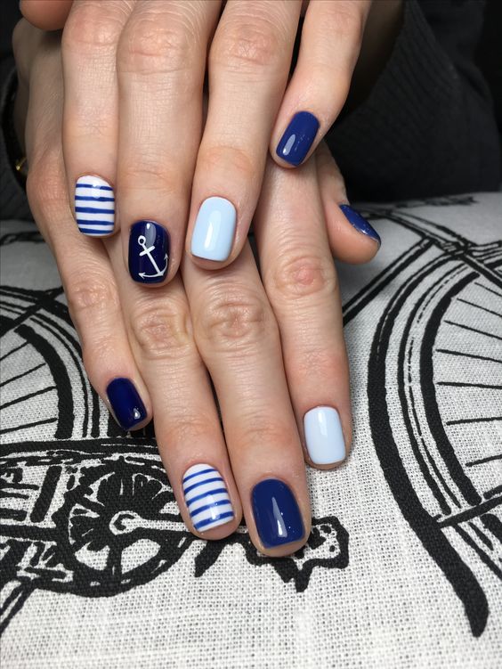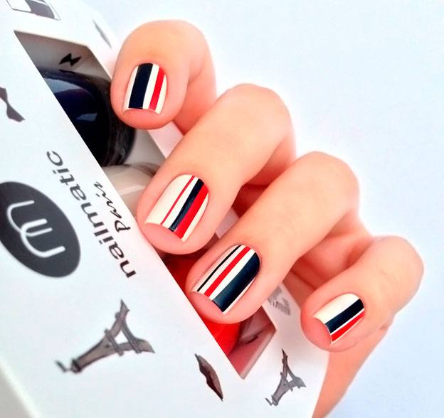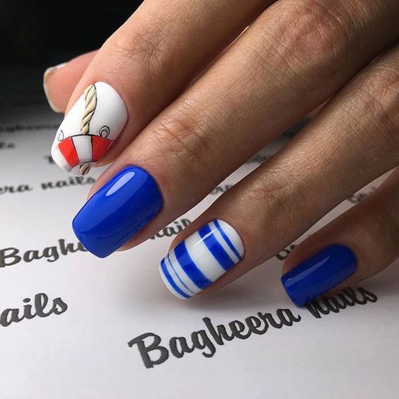 Manucure à rayures avec un thème nautique est l'un des plus communs. Et quand il y a une conversation sur la manucure à rayures, beaucoup ont une association avec le thème marin.Aujourd'hui, une manucure de style marin est à la mode et pertinente. Le style marin de manucure est parfait pour les vacances d'été, ainsi que pour l'agitation quotidienne de la ville d'été. L'essentiel est que cela corresponde à l'image sélectionnée.