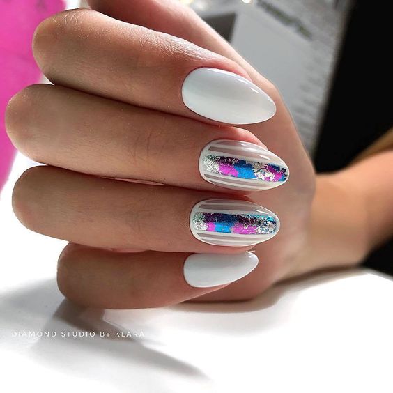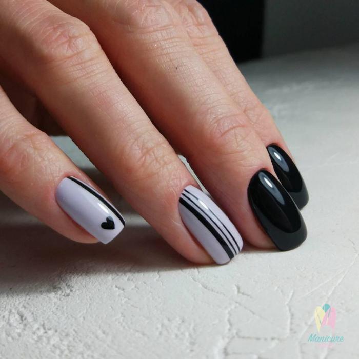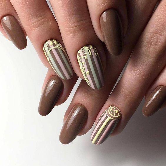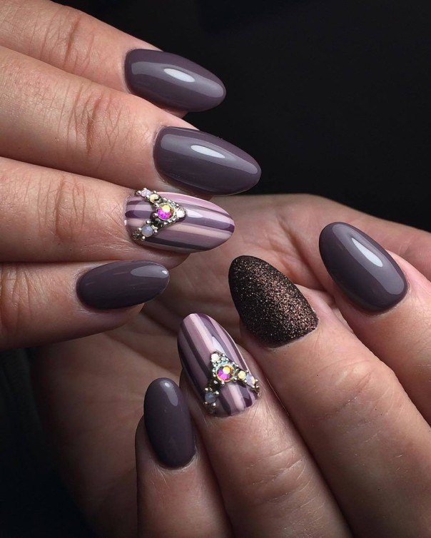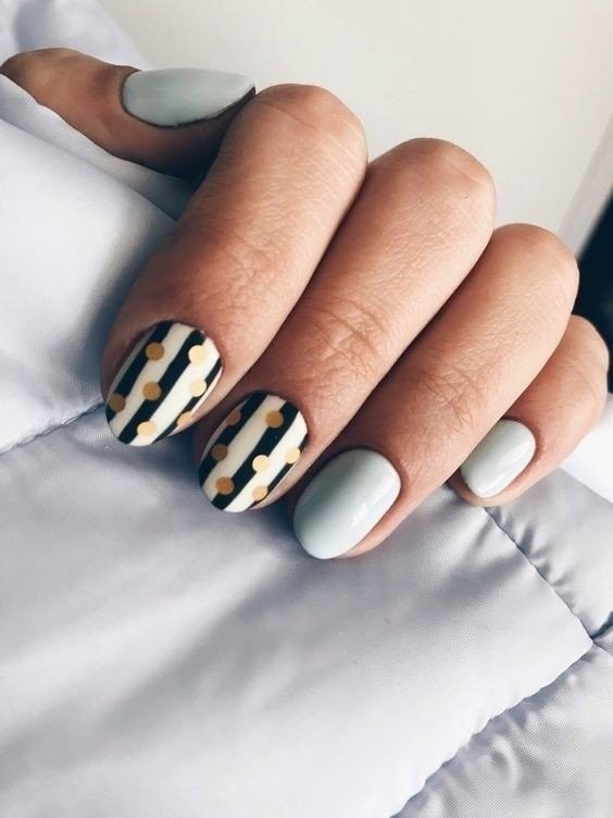 C’est le moment idéal pour choisir le schéma de couleurs d’une manucure à la mode. Une variété de couleurs et de nuances n'a pas de limites. Vous pouvez donner la préférence à n'importe quelle couleur que vous aimez. Les couleurs les plus en vogue du vernis à ongles à rayures cette année sont des nuances naturelles telles que le beige, le blanc, le gris, le bleu ou le noir. Ils sont merveilleux combinés les uns avec les autres et avec d'autres nuances. Une manucure à rayures avec une base légère et des rayures contrastantes appliquées aura fière allure. Si vous souhaitez obtenir une manucure élégante et originale, ajoutez des années avec divers strass, pierres ou toutes sortes de frottements.