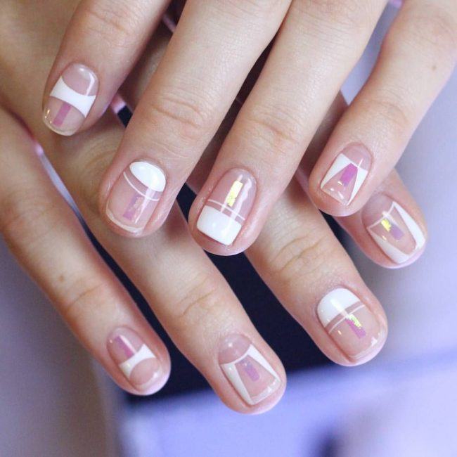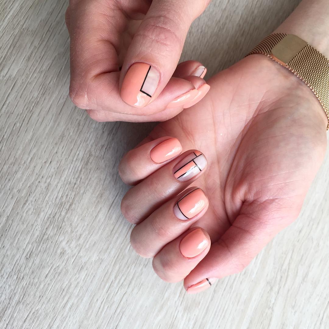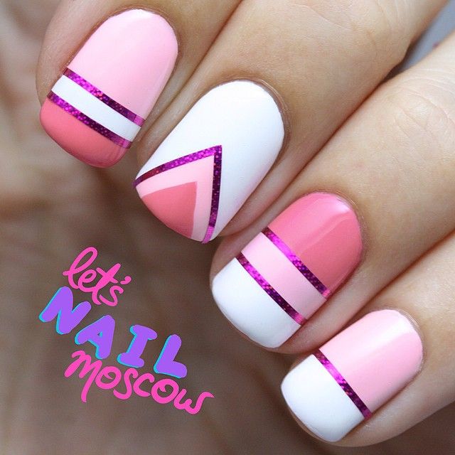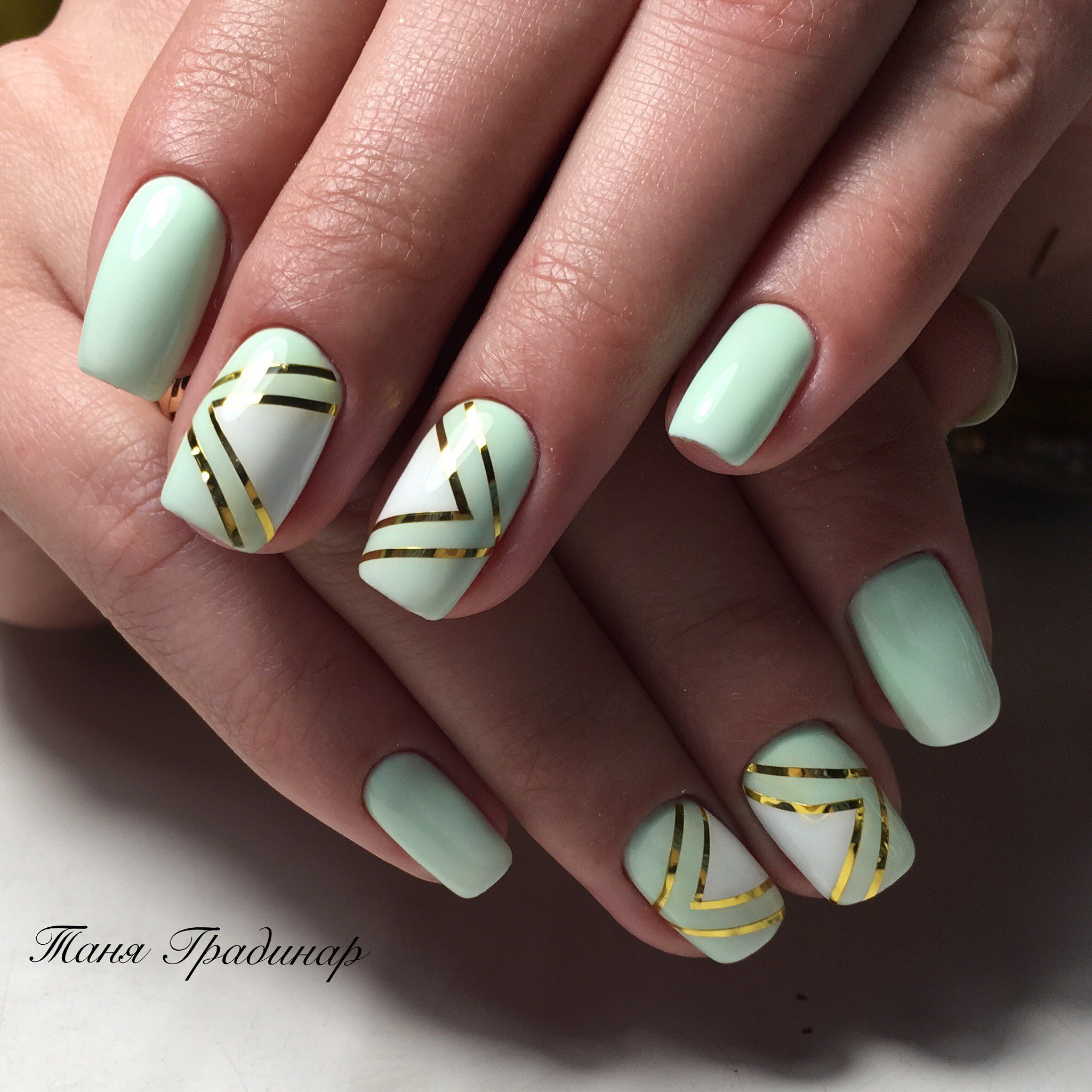 Manucure à rayures est souvent étroitement liée à des motifs géométriques. Cette manucure est élégante, élégante et élégante. En créant des formes géométriques sur les ongles à partir de différentes rayures, vous obtiendrez une merveilleuse version de la solution de conception pour la manucure.