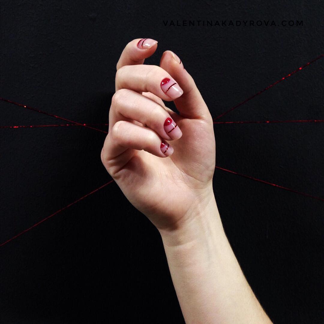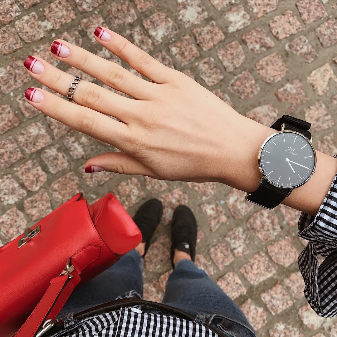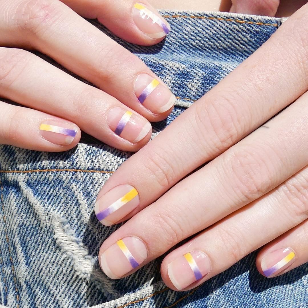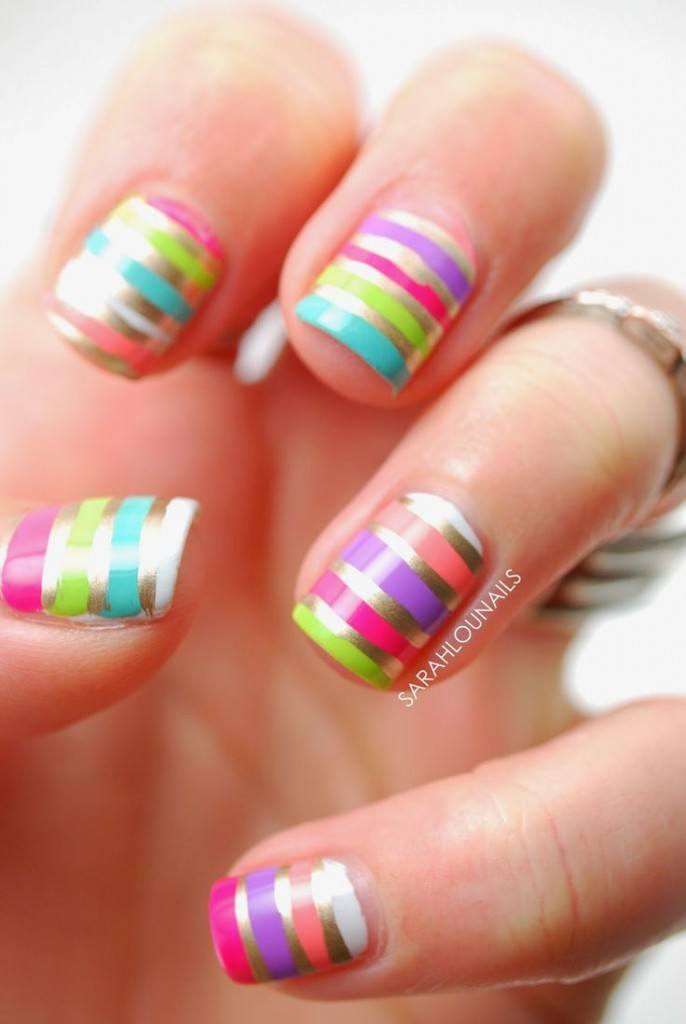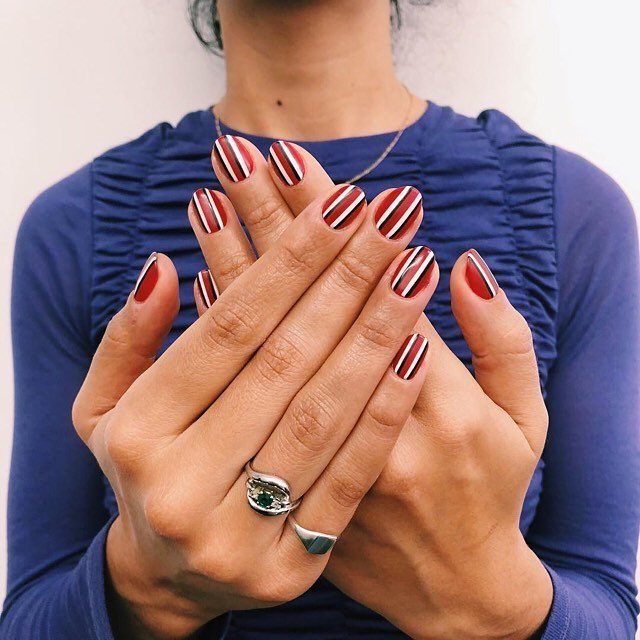 Manucure à rayures: couleurs à la mode et idées de nail art moderne sur la photo