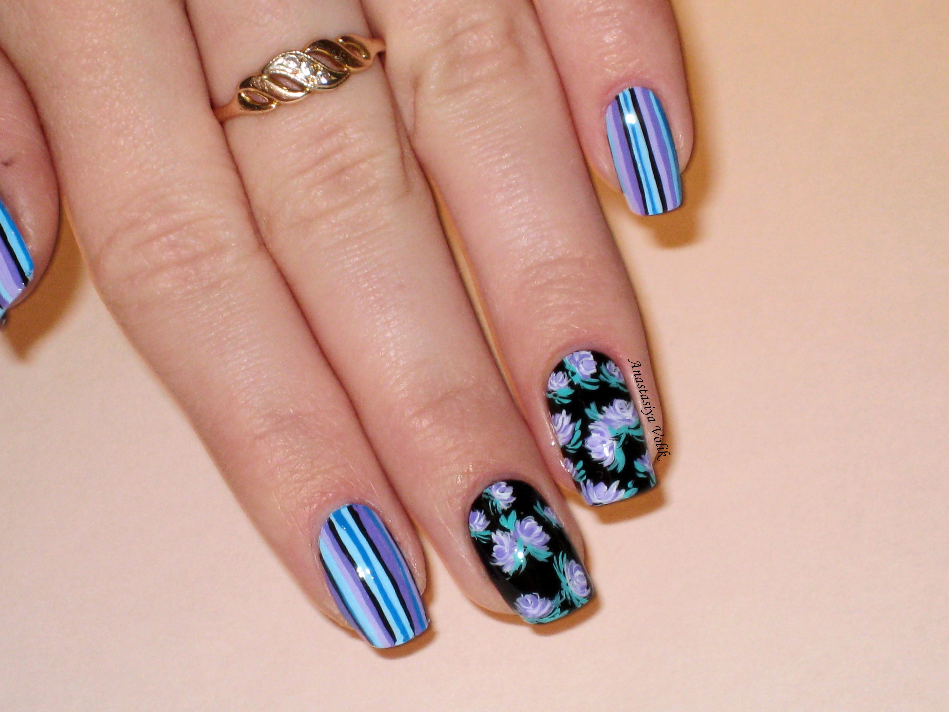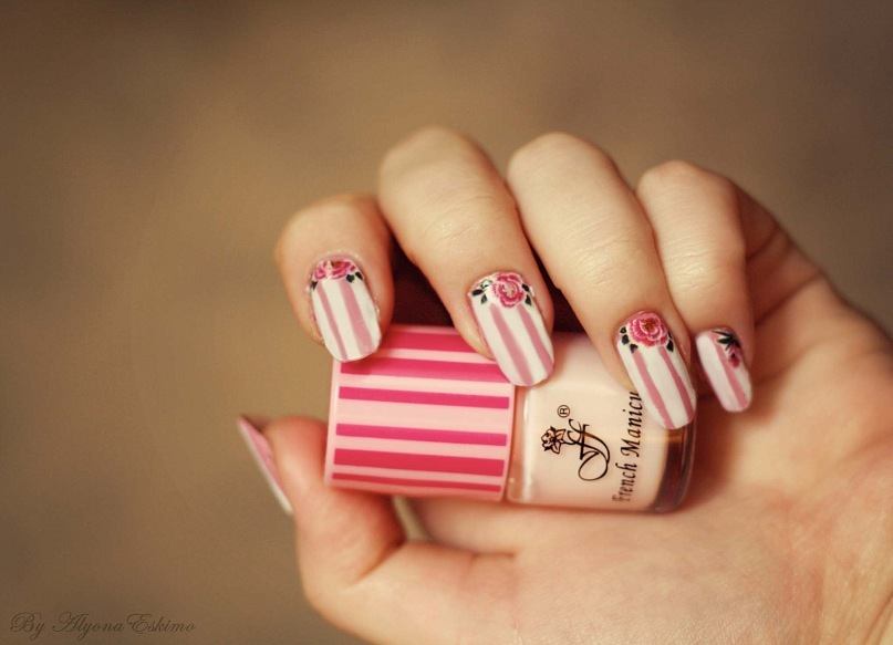 À première vue, une manucure à rayures utilisant un motif floral peut sembler être une décision de conception incompatible. Mais les dames modernes n'ont pas peur d'expérimenter. La manucure à rayures associée à un motif floral juteux et lumineux est incroyablement belle et attrayante. La manucure à rayures, dans laquelle un motif floral est ajouté, donnera de la tendresse, de la romance et une certaine légèreté à l’image. Manucure à rayures avec motif floral pour créer une manucure lumineuse et festive - la version originale, qui peut être complétée par divers strass, des bandes de papier d'aluminium, des gommages et des poudres brillantes. En outre, une telle manucure n'a aucune restriction saisonnière.