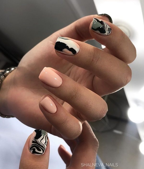 Il convient de noter qu'une belle et attrayante manucure en marbre est parfaite pour toute femme afin de créer une manucure élégante au quotidien. Élégant et attrayant, regardez les ongles avec une manucure, faite dans le style de "différentes mains". La manucure de tous les jours faite de vernis mat gel a un aspect original et attrayant. Si vous êtes courageux, jeune et actif, un vernis gel en gel pour manucure exceptionnel vous conviendra certainement. Une telle manucure vous réconfortera au quotidien, vous procurera des émotions positives et vous donnera une bonne humeur. Essayez une nouvelle manucure lumineuse avec l’image du visage d’une fille, d’animaux amusants ou des inscriptions audacieuses.