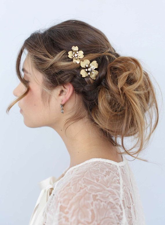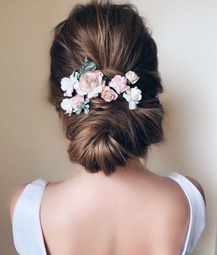 Coiffures délicates avec des épingles à cheveux de fleurs