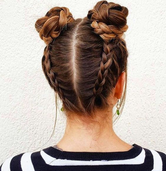 Non moins populaires sont les coiffures basées sur des tresses. Il peut s'agir d'épillets simples et familiers ou d'une option légèrement plus complexe, comme sur la photo. Pour faire cette coiffure, divisez les cheveux en deux parties avec une séparation. Tresser la tresse française de chaque côté et les relier avec un élastique. Une coiffure simple mais en même temps très belle est prête!