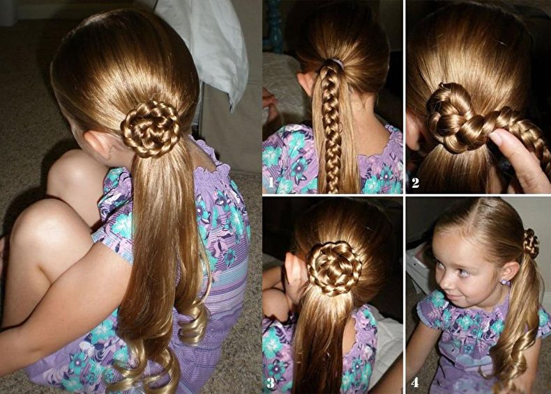 Les propriétaires de cheveux longs sont particulièrement chanceux. En effet, grâce à cela, vous pouvez créer un grand nombre de coiffures très différentes. Ceux qui ont les cheveux courts ne doivent pas être bouleversés, car si vous le souhaitez, vous pouvez utiliser de nombreuses autres coiffures non moins attrayantes. Bien entendu, les mères aideront les très jeunes filles dans ce processus. À partir de 10-13 ans, vous pouvez essayer de faire quelque chose comme ça vous-même.