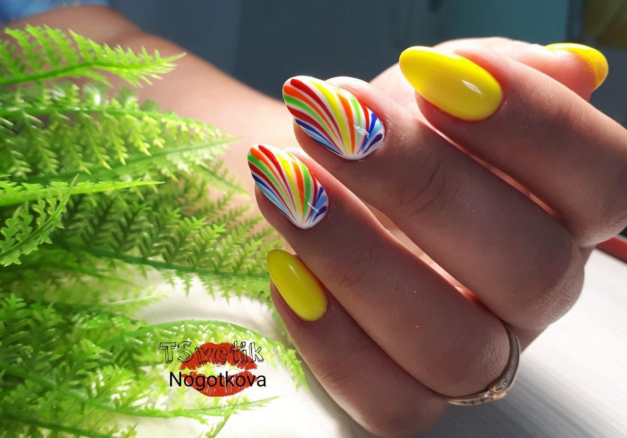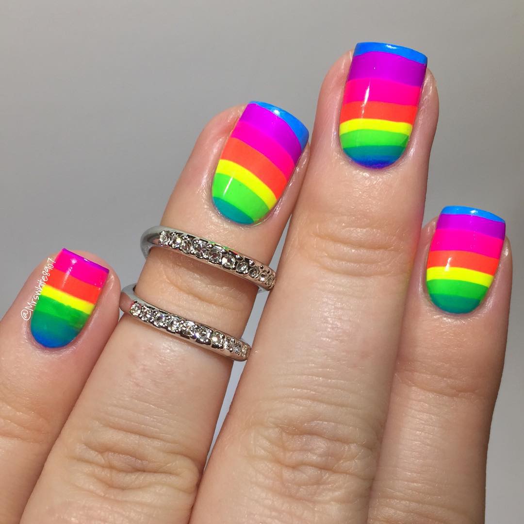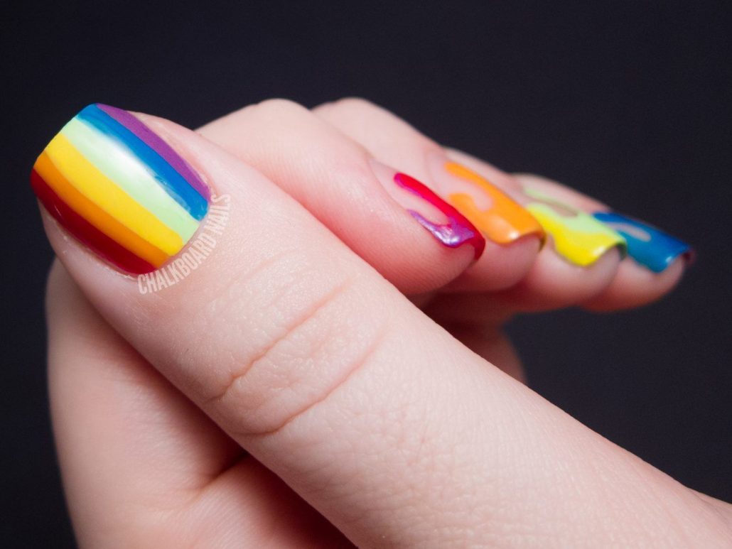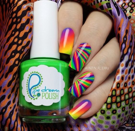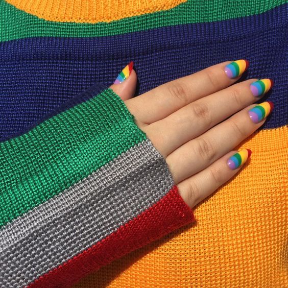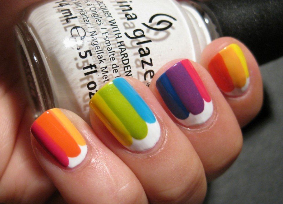 Quel arc-en-ciel peut faire sans couleurs vives et saturées? Après tout, avec l'aide de ces couleurs, vous pouvez transmettre toute l'humeur humaine. En outre, les couleurs vives peuvent susciter l'humeur la plus terrible. Presque toutes les jeunes filles de l'été ont commencé à utiliser exactement l'image de l'arc-en-ciel. Apparemment, cela est dû au fait que l'ornement lumineux est parfaitement combiné à toutes les couleurs du revêtement de vernis et est idéal pour toute garde-robe pour les promenades du soir.