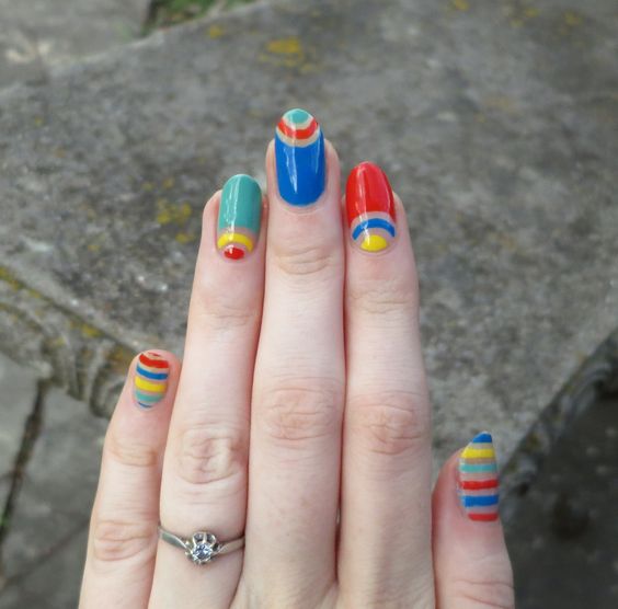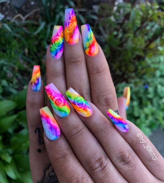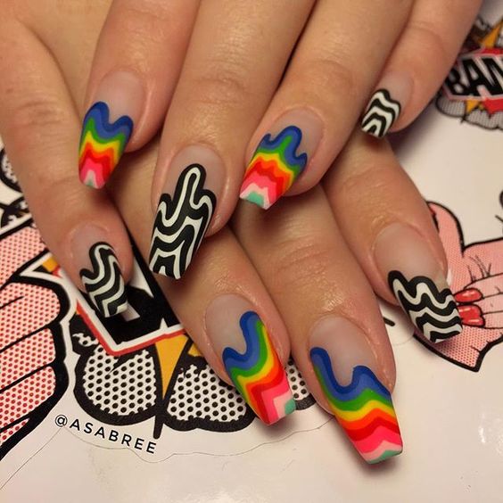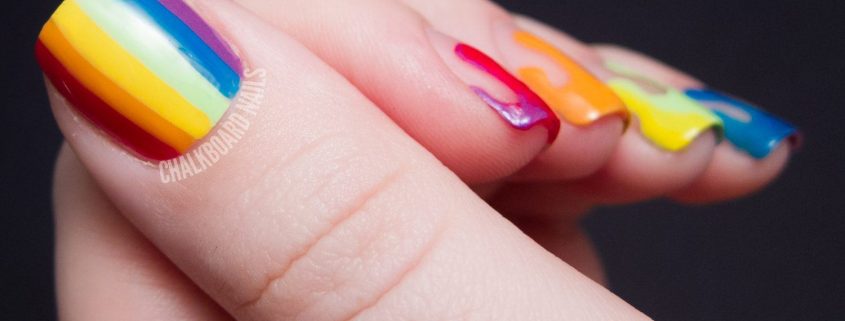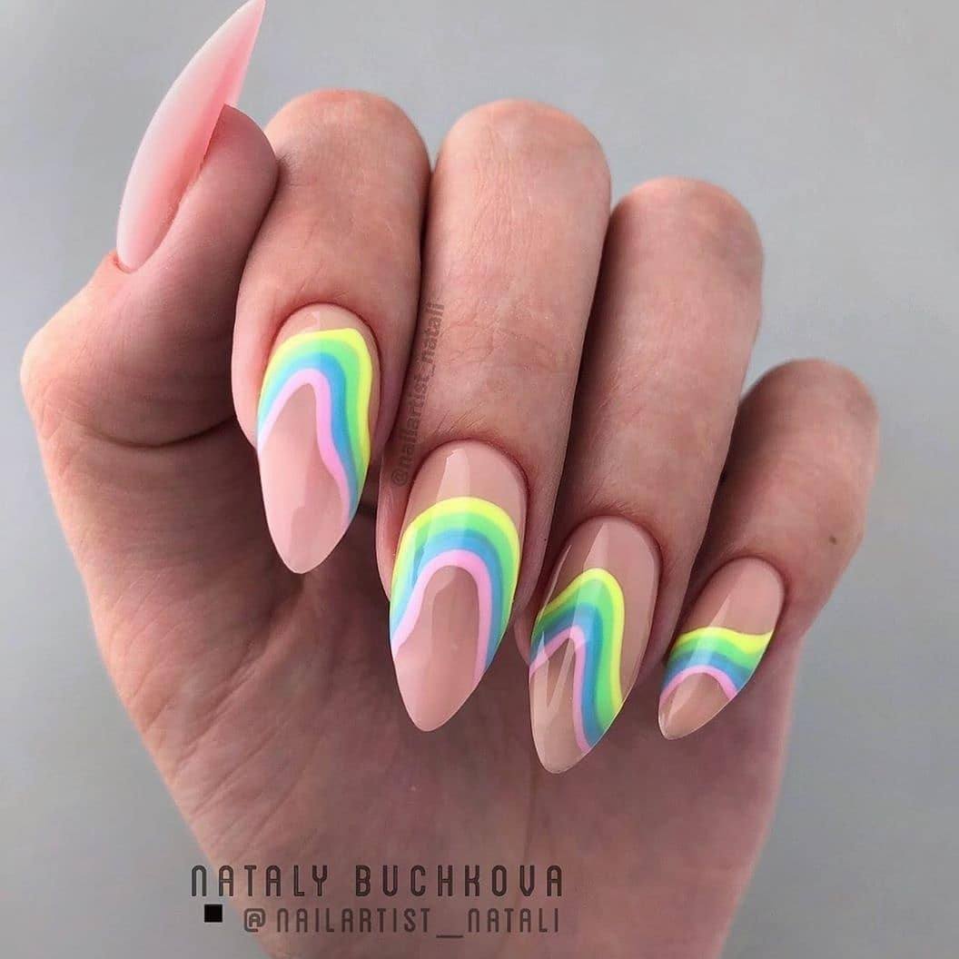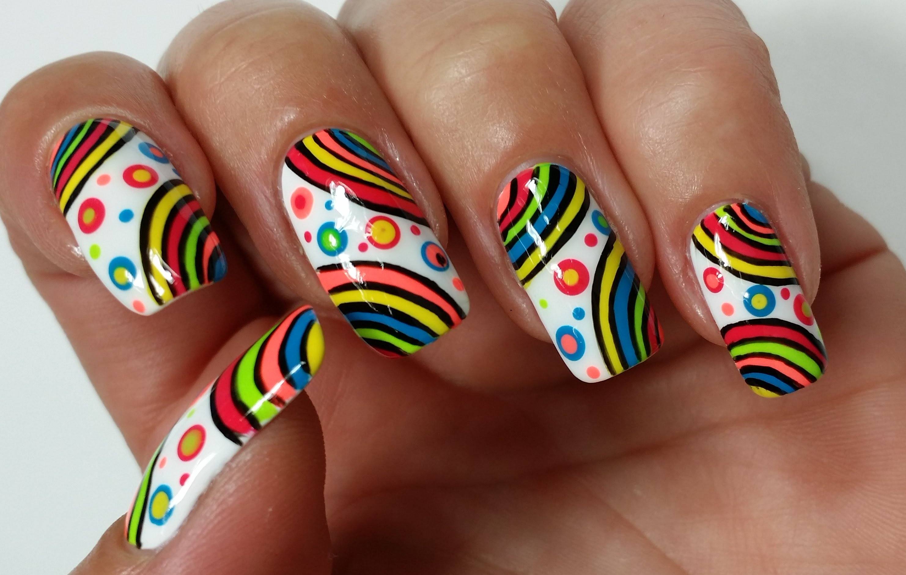 Quel arc-en-ciel peut faire sans couleurs vives et saturées? Après tout, avec l'aide de ces couleurs, vous pouvez transmettre toute l'humeur humaine. En outre, les couleurs vives peuvent susciter l'humeur la plus terrible. Presque toutes les jeunes filles de l'été ont commencé à utiliser exactement l'image de l'arc-en-ciel. Apparemment, cela est dû au fait que l'ornement lumineux est parfaitement combiné à toutes les couleurs du revêtement de vernis et est idéal pour toute garde-robe pour les promenades du soir.