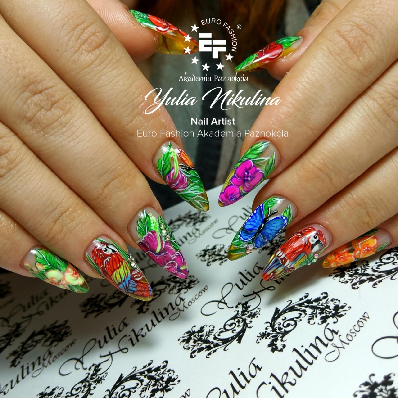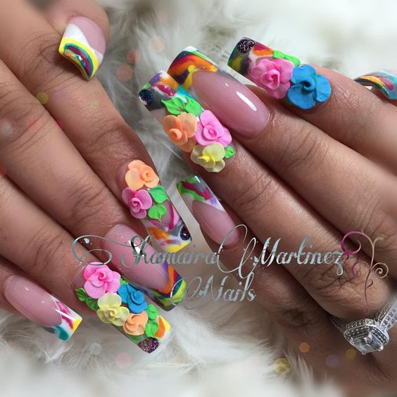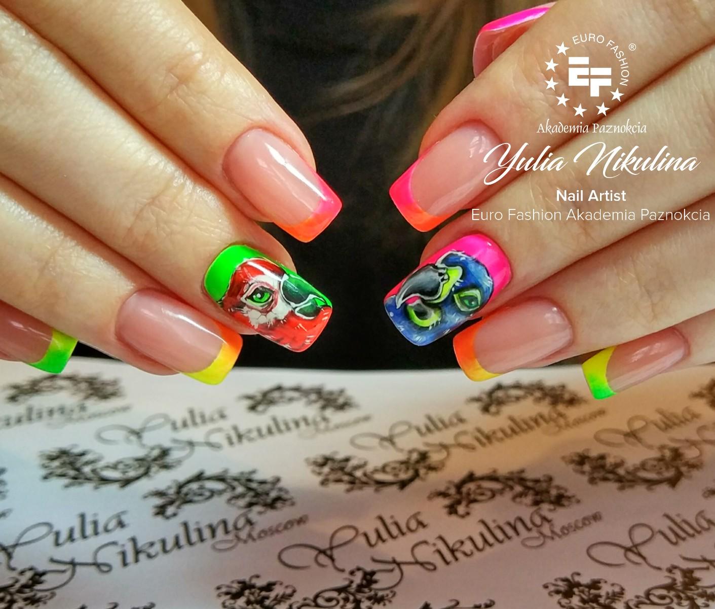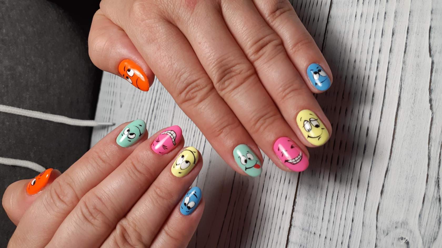 La teinte blanche du revêtement de laque donne une occasion unique d'exécuter n'importe lequel des ornements sur son fond. Par exemple, l'arc-en-ciel va bien avec le contraste de blanc, soulignant ainsi la luminosité et la richesse du dessin. Cela aura l'air génial si presque chaque doigt a une image qui ne contient que quelques éléments de décoration liés aux thèmes de l'arc-en-ciel.
