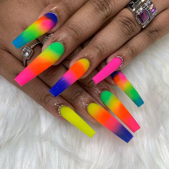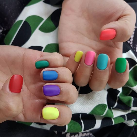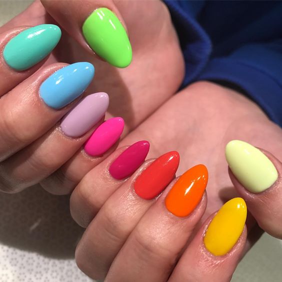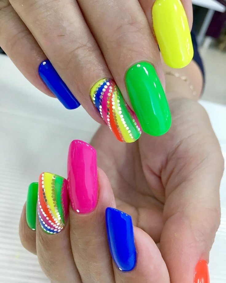 Manucure arc-en-ciel lumineux: nuances de couleurs et technologies de conception