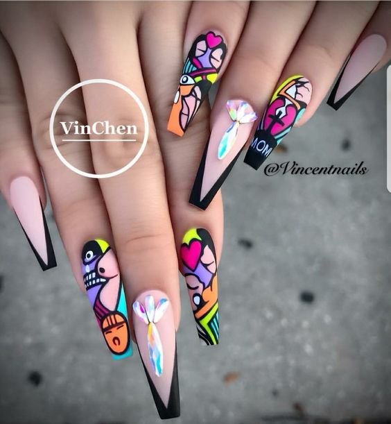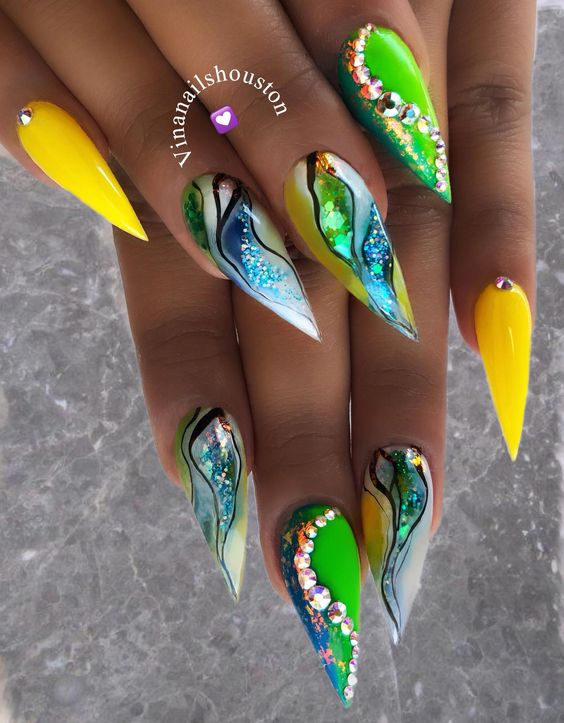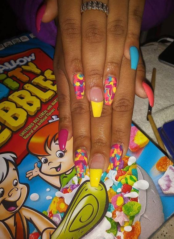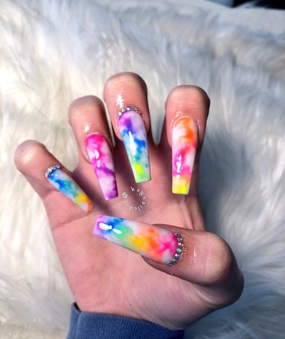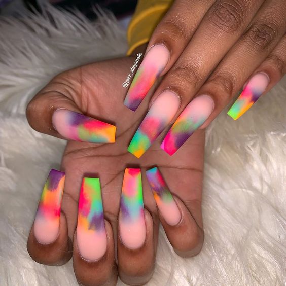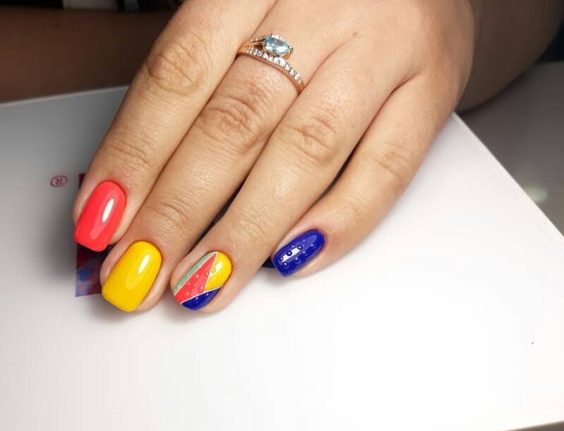 La manucure de style arc-en-ciel est devenue la plus populaire parmi les personnalités confiantes et dynamiques. Ce sont principalement des jeunes femmes. Toutes les femmes adultes ne peuvent pas se permettre une manucure hétéroclite.