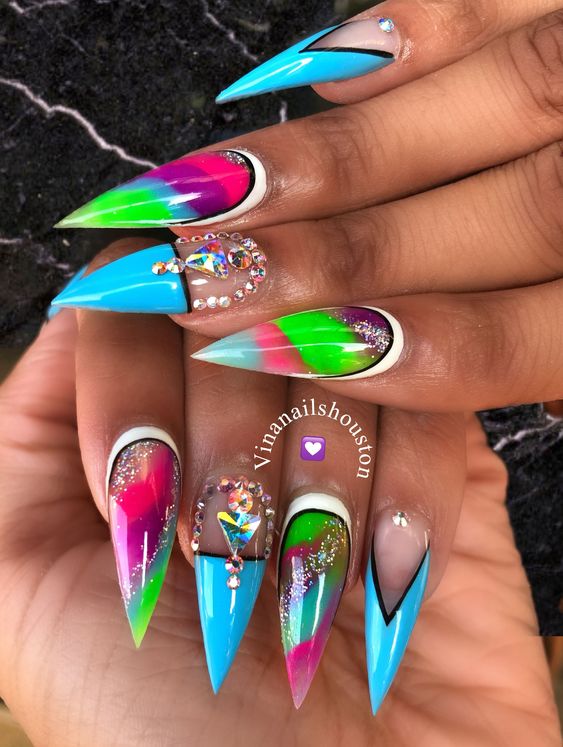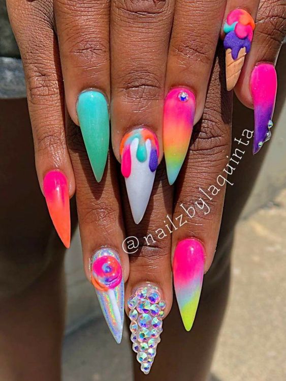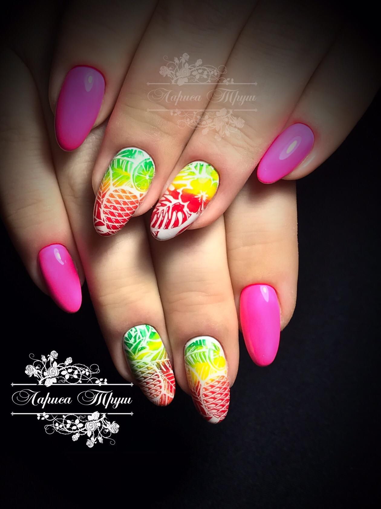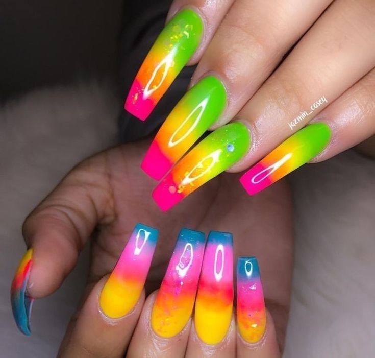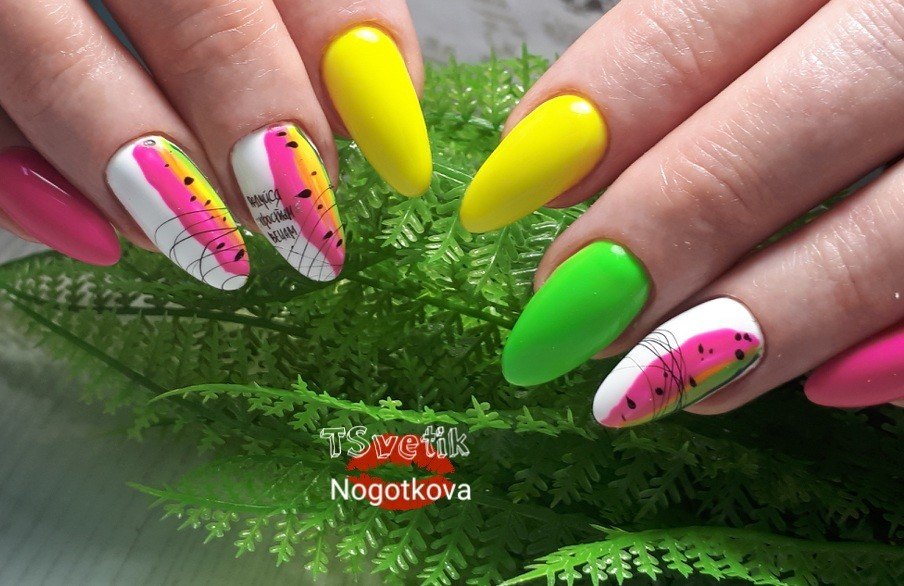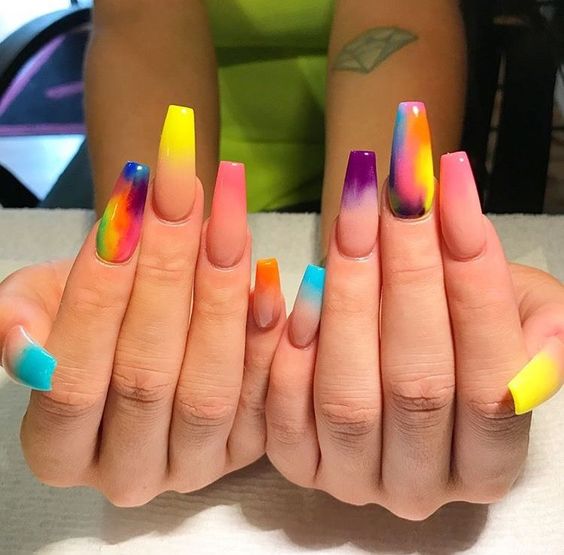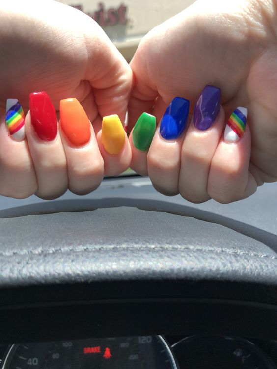 L'été est exactement la période où toutes les filles tentent de paraître brillantes et envoûtantes. C'est pourquoi les femmes modernes de la mode ont souvent besoin, dans les salons de beauté, de véritables chefs-d'œuvre sur leurs ongles. Un tel modèle de manucure est un arc-en-ciel. Les couleurs vives et saturées sont en parfaite harmonie avec les vacances à la plage et, bien sûr, avec les promenades du soir.