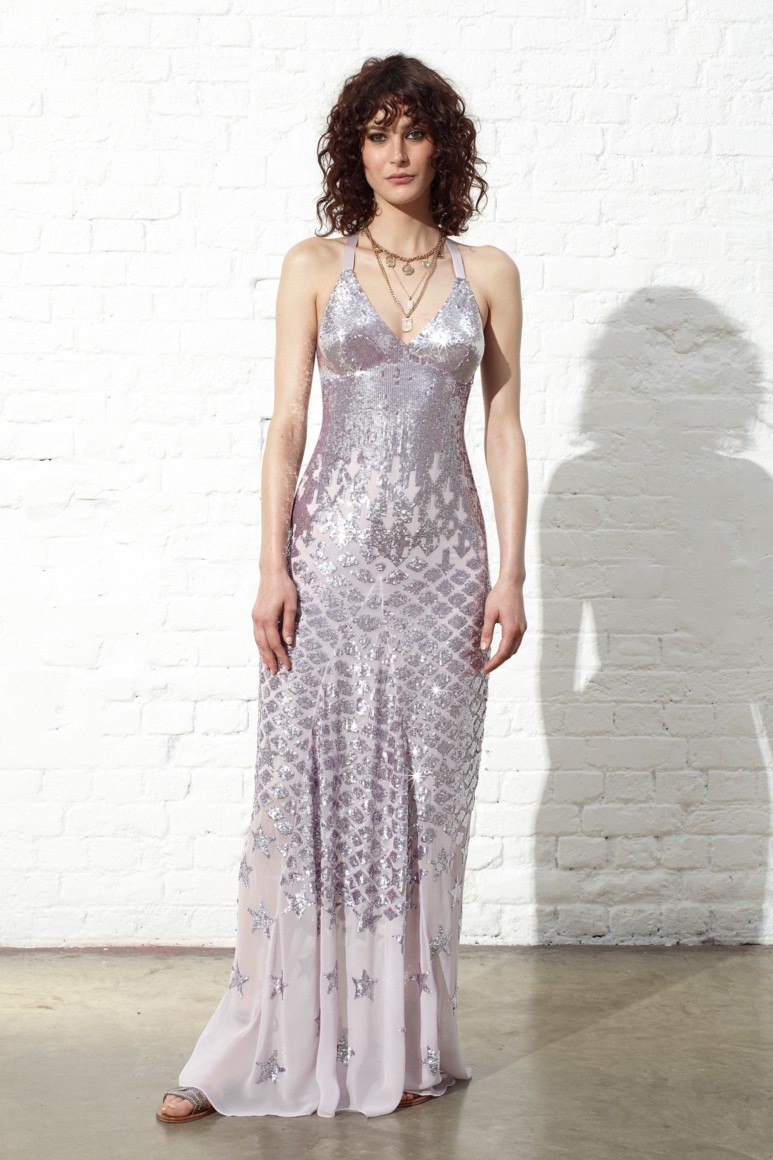 La couleur grise est presque une cousine de couleur noire, et par conséquent de nombreux modèles longs de robe grise sont très similaires aux styles populaires de robe noire. Une matière grise et fluide coule librement autour de la silhouette féminine dans une longue robe. Chaque modèle d'une robe longue grise est unique. Toutes les robes de sol grises illustrées sur la photo sont un exemple de style et de sophistication.