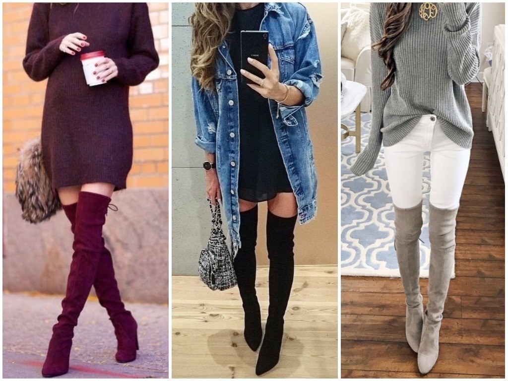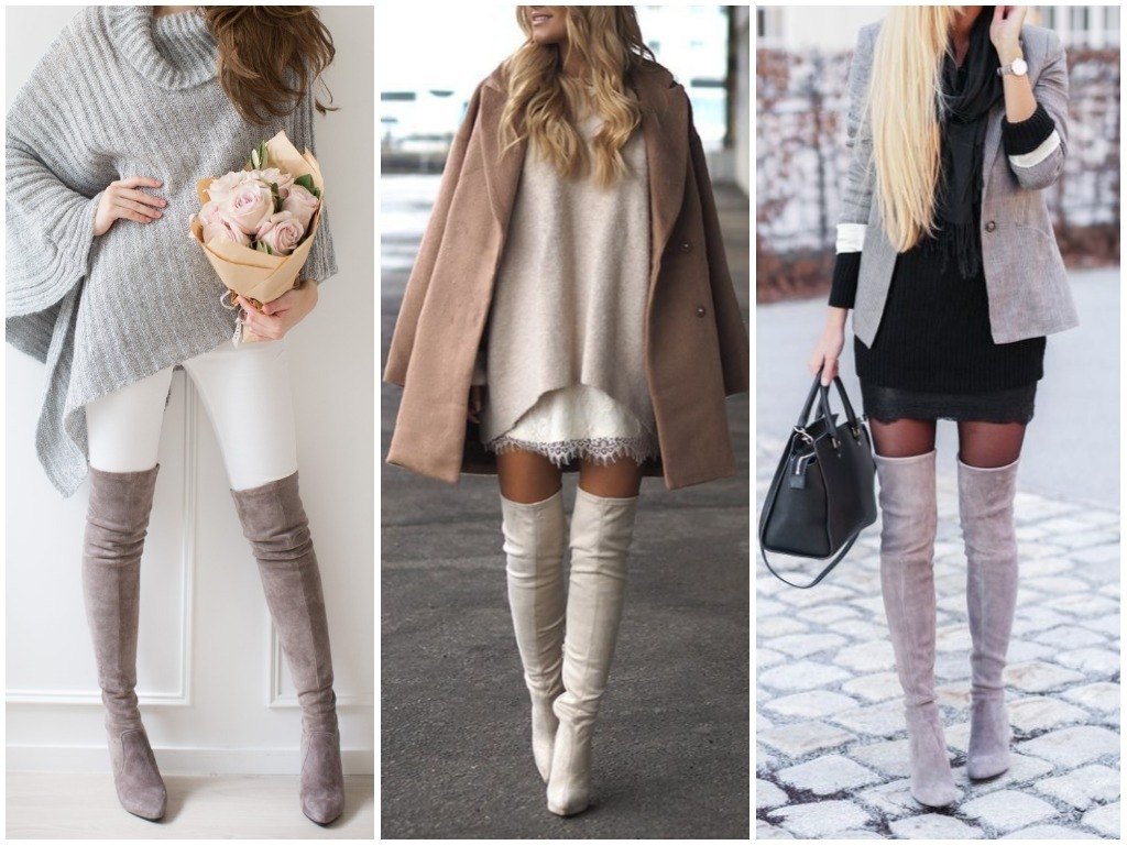 Les modèles féminins et classiques sont un excellent duo avec des bottes au genou. Dans ce cas, il n'y a qu'une seule règle: vous devez abandonner les modèles de style sportif.